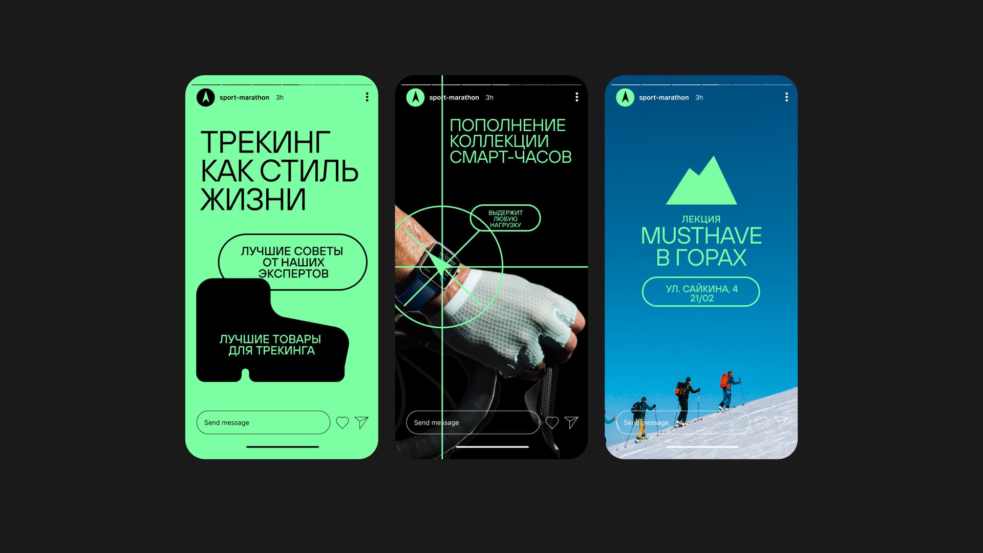 The color strategy is based on a dark foundation combined with a bright green accent that works as a unifying signal and increases visibility. At the same time, the identity is flexible and works effectively with full-color photography, allowing for more expressive communication without losing consistency.