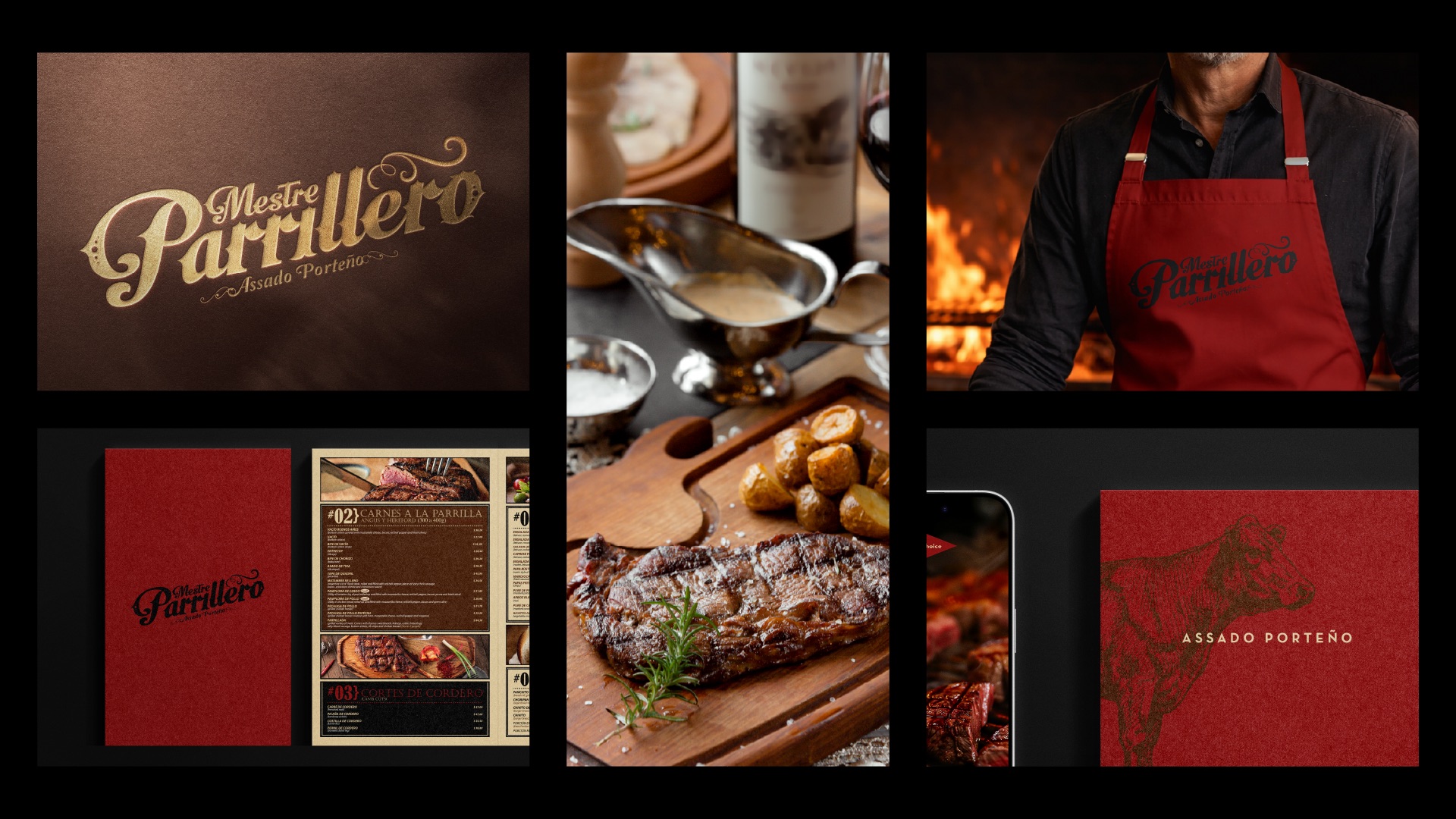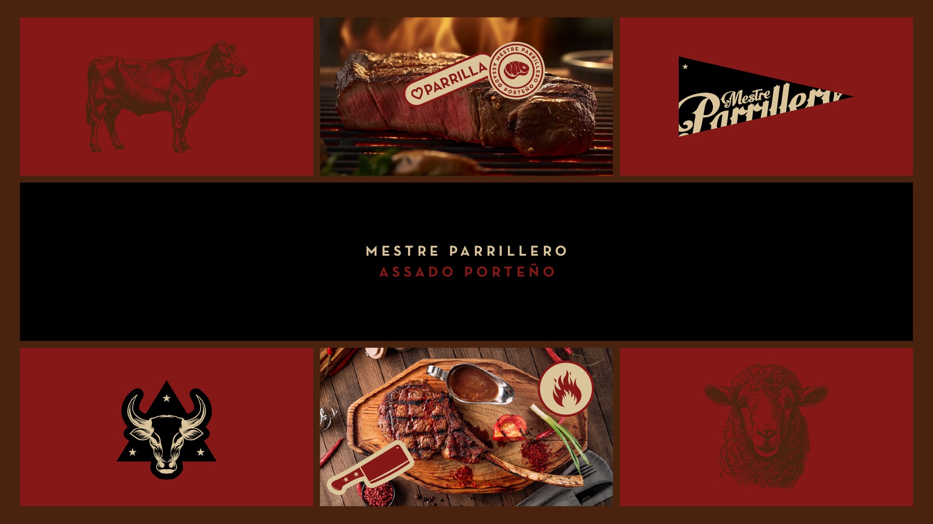 For Mestre Parrillero, our challenge was to capture the spirit of Buenos Aires’ parrilla culture while introducing a modern, upscale identity that resonates with Brazilian diners. Parrilla, the classic Latin American method of slow-grilling meats over embers, is a ritual of gathering and conviviality; “parrillero” refers to the master griller who orchestrates this experience. We drew from the port-city soul of Buenos Aires (“porteño”) to inspire a visual language that celebrates tradition, hospitality and craftsmanship.
