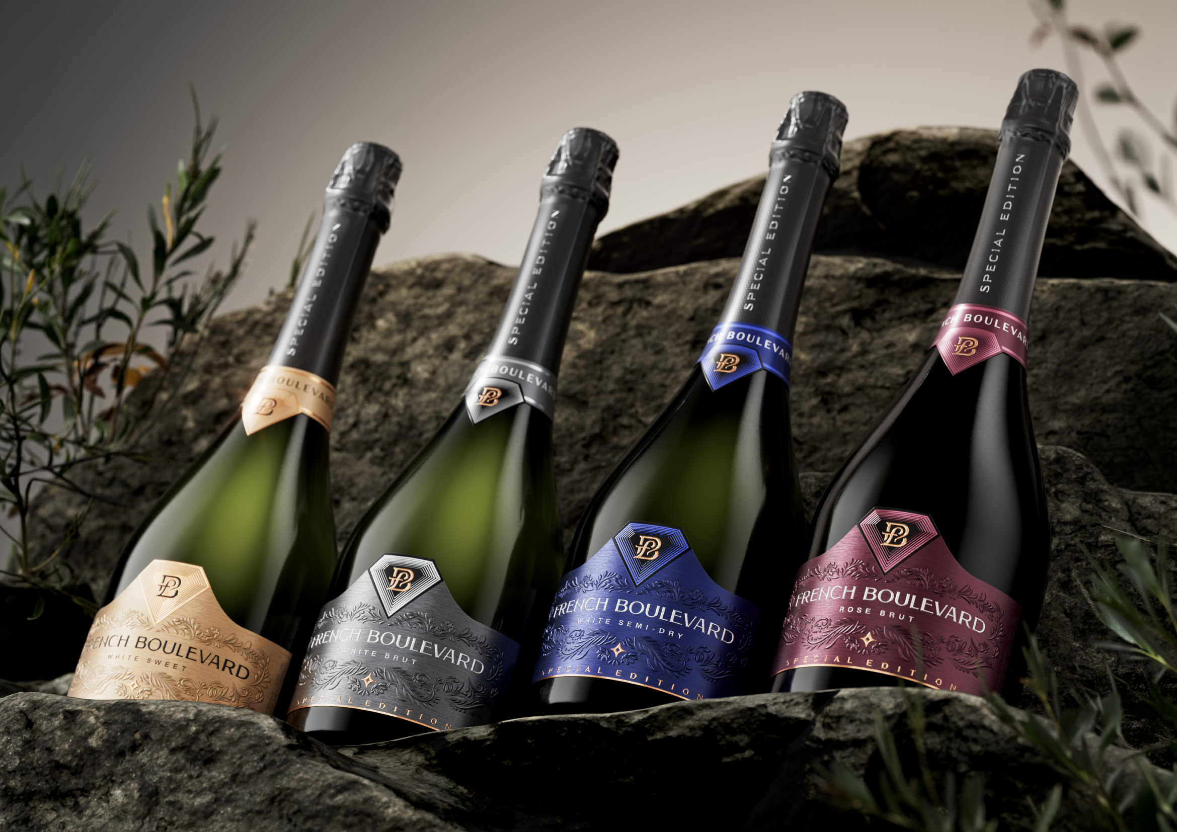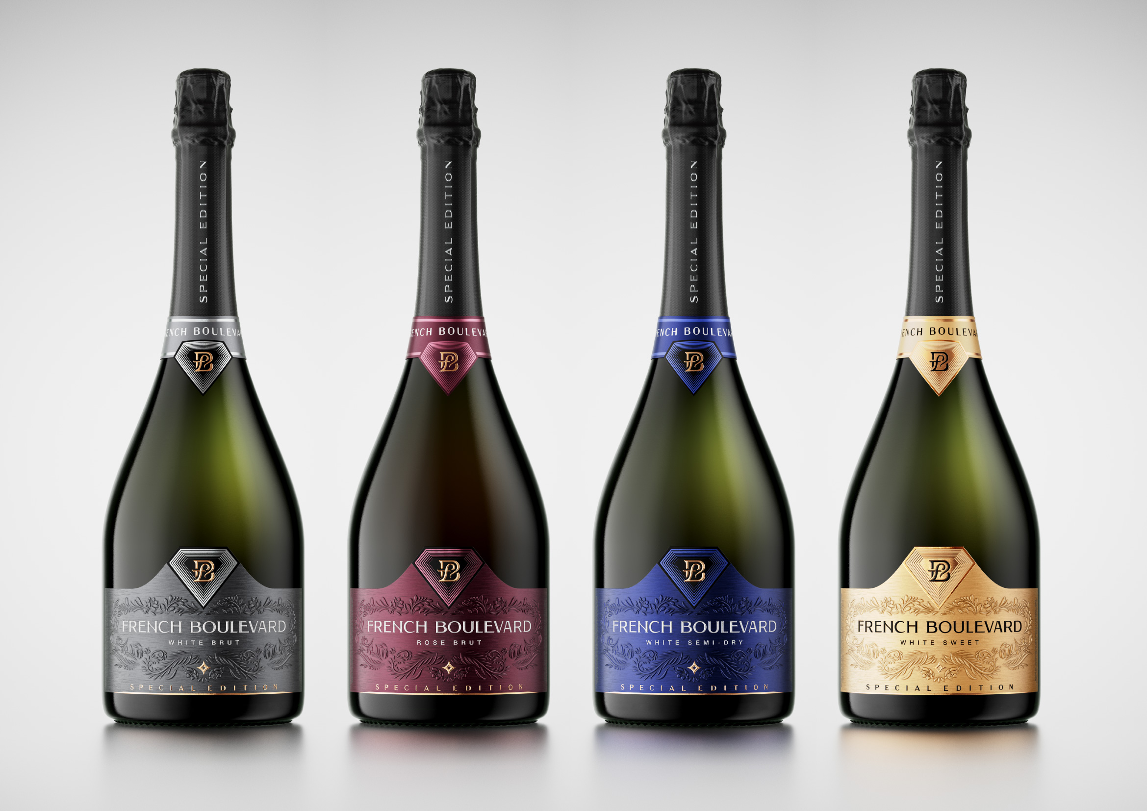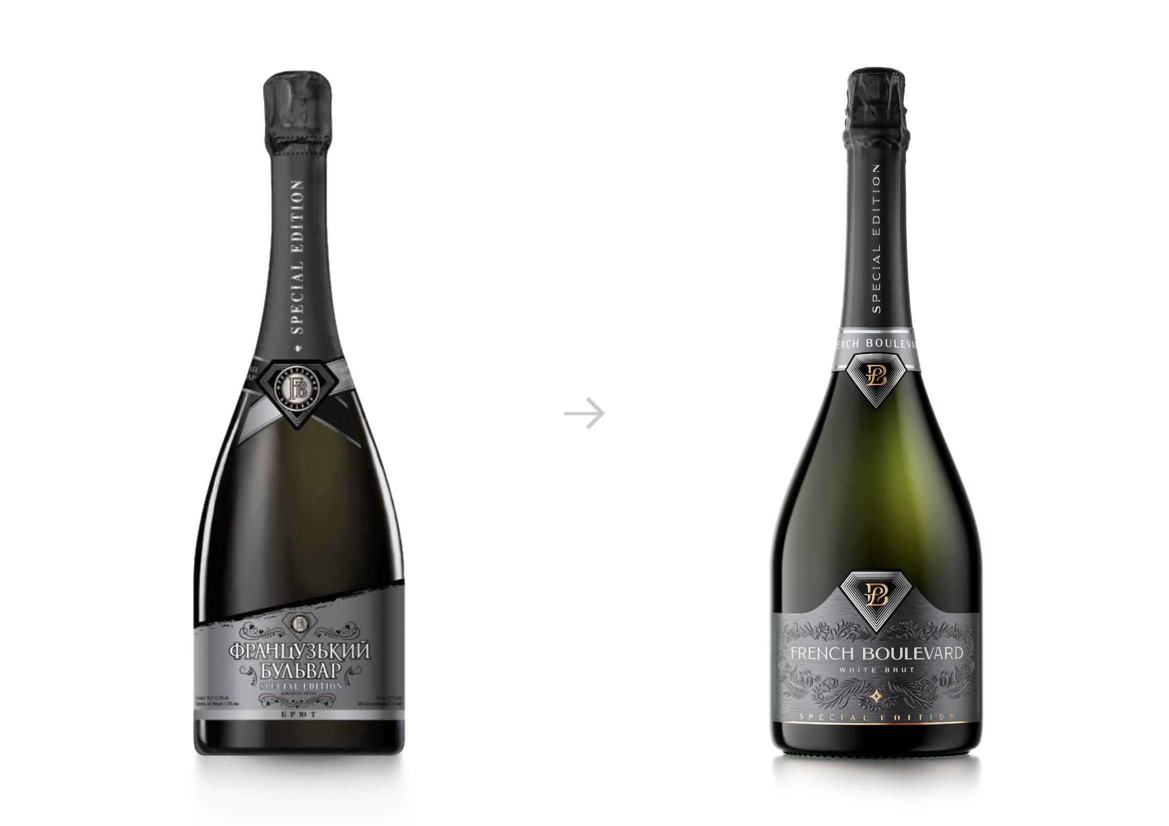 The redesign of the French Boulevard Special Edition sparkling wine label represents an evolutionary continuation of the brand’s renewed visual identity, carefully balancing innovation with continuity. While introducing a more contemporary aesthetic, the new design deliberately preserves the most recognizable elements of the previous version in order to maintain brand consistency and consumer familiarity. The diamond — the brand’s distinctive symbol — has been thoughtfully reinterpreted and seamlessly integrated into both the neck label and the main label, reinforcing visual cohesion across the packaging.