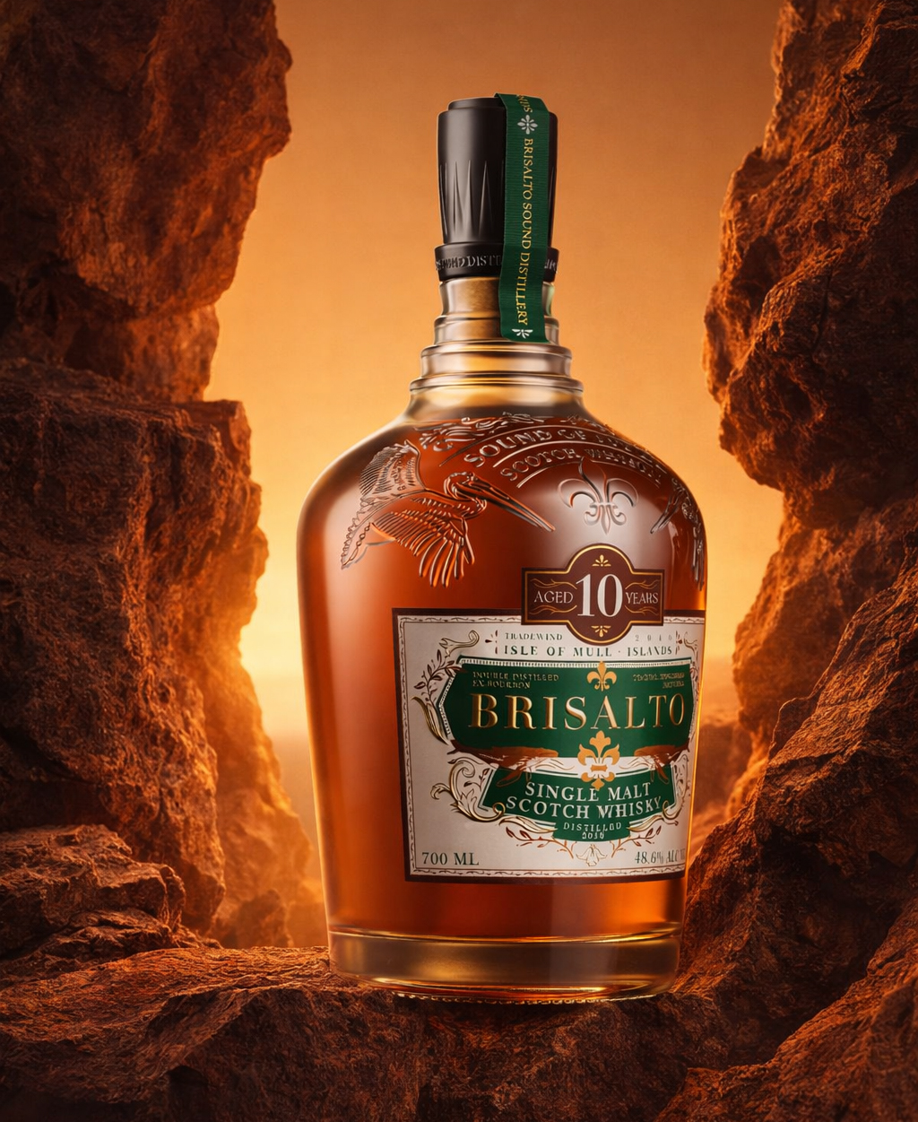 On the rugged western edge of Scotland, where the Atlantic presses against dark rock and restless skies, the Isle of Mull stands as a place shaped by wind, tide, and time. It is here, along the narrow waters of the Sound of Mull, that BRISALTO Tradewind 2012 was born — a single malt that carries within it the quiet authority of the sea.