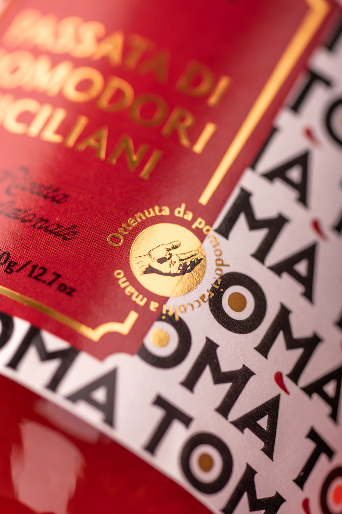 On one side, the logotype becomes a visual system. Designed to be repeatable, it forms a rhythmic pattern that subtly spells “tomato”, creating a strong and ownable graphic identity that enhances memorability and shelf impact.