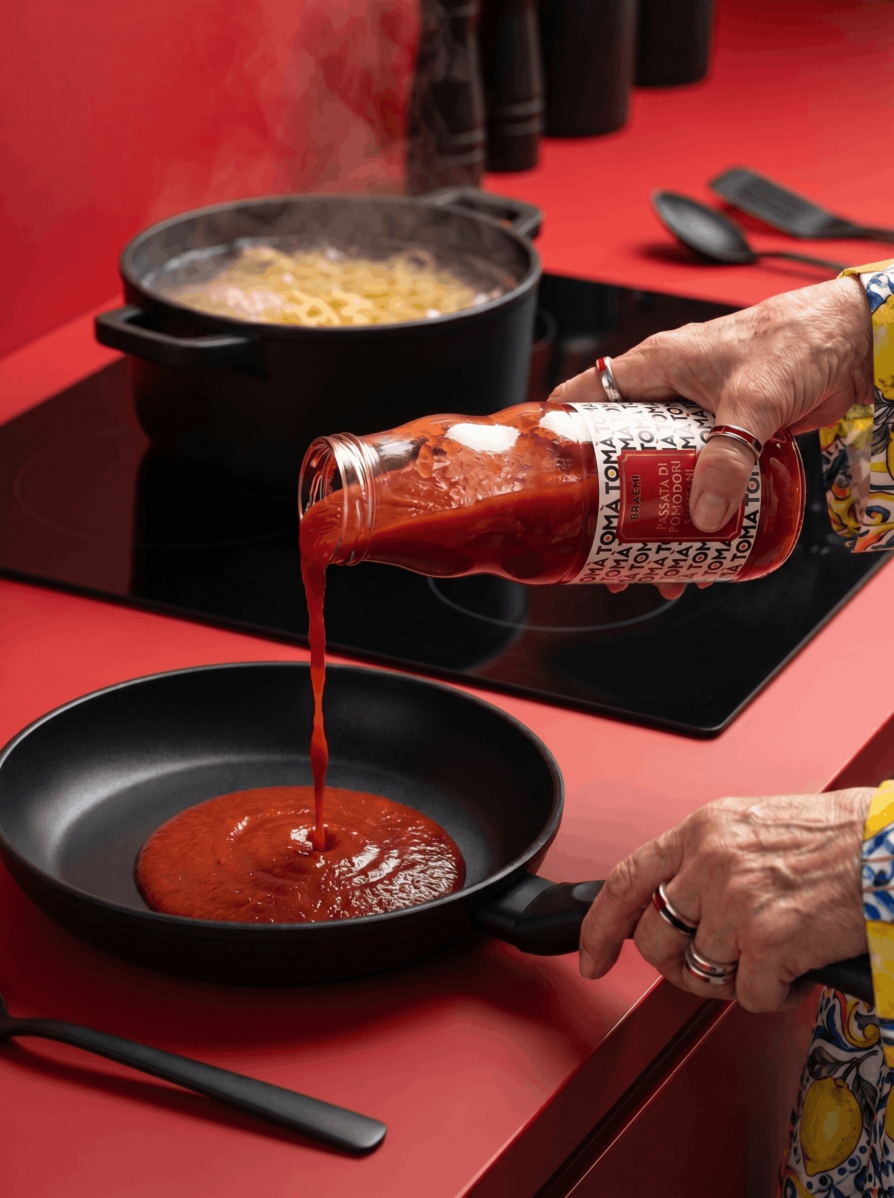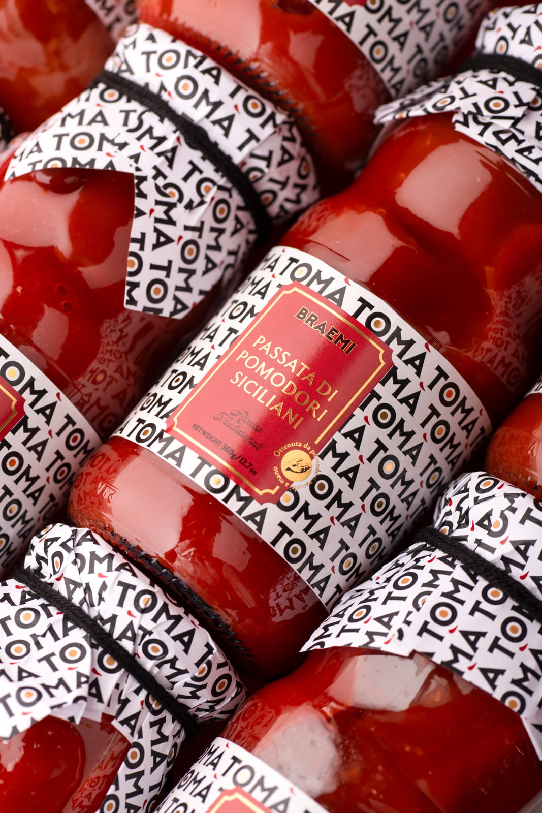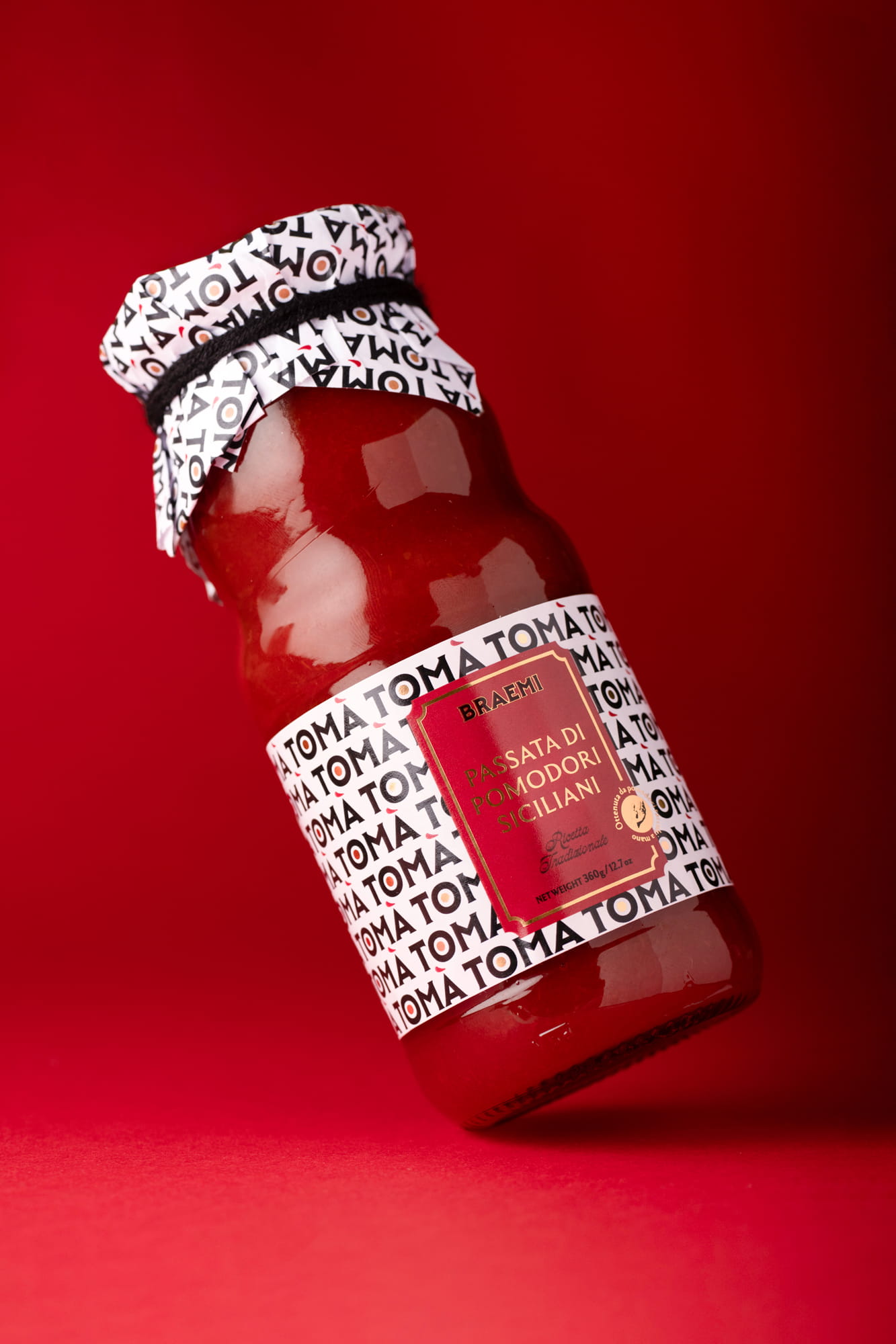 TOMÀ is a tomato sauce brand built on a simple but distinctive linguistic insight. The name works on two levels: when repeated, TOMÀ naturally reads as “tomato”, making the category instantly recognizable. In Sicilian dialect, “tò mà” also means “your mum”, evoking a sauce made the way your mum would at home.