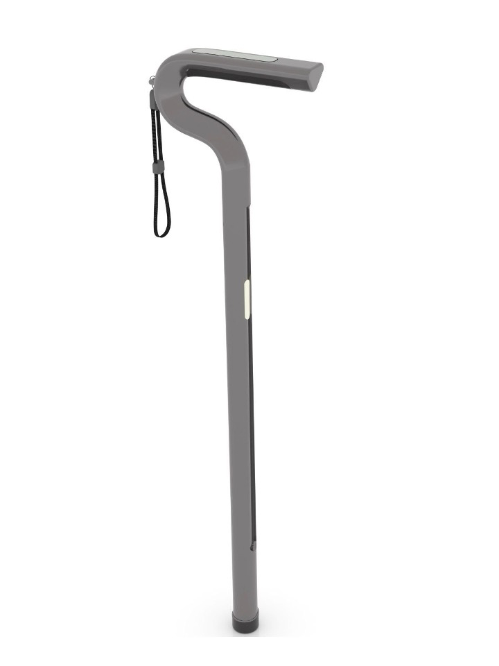 SafeStep has also been thoughtfully designed with comfort and ease of use in mind. It features an adjustable strap that fits securely around the user’s arm, providing greater stability and reducing the risk of falls. At its base, the cane includes an automatic light that activates through motion sensors, illuminating the user’s path in low-light conditions or at night—significantly increasing safety.
