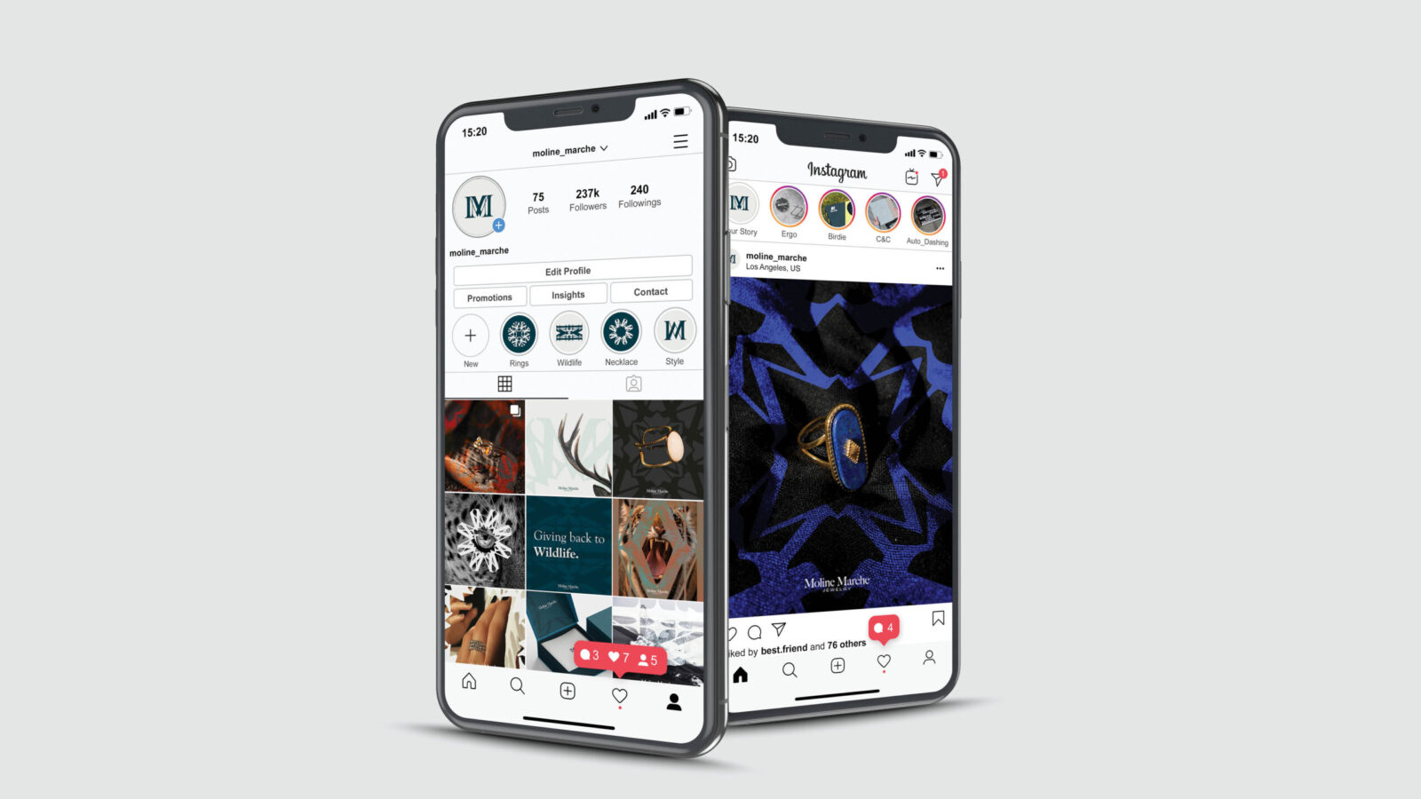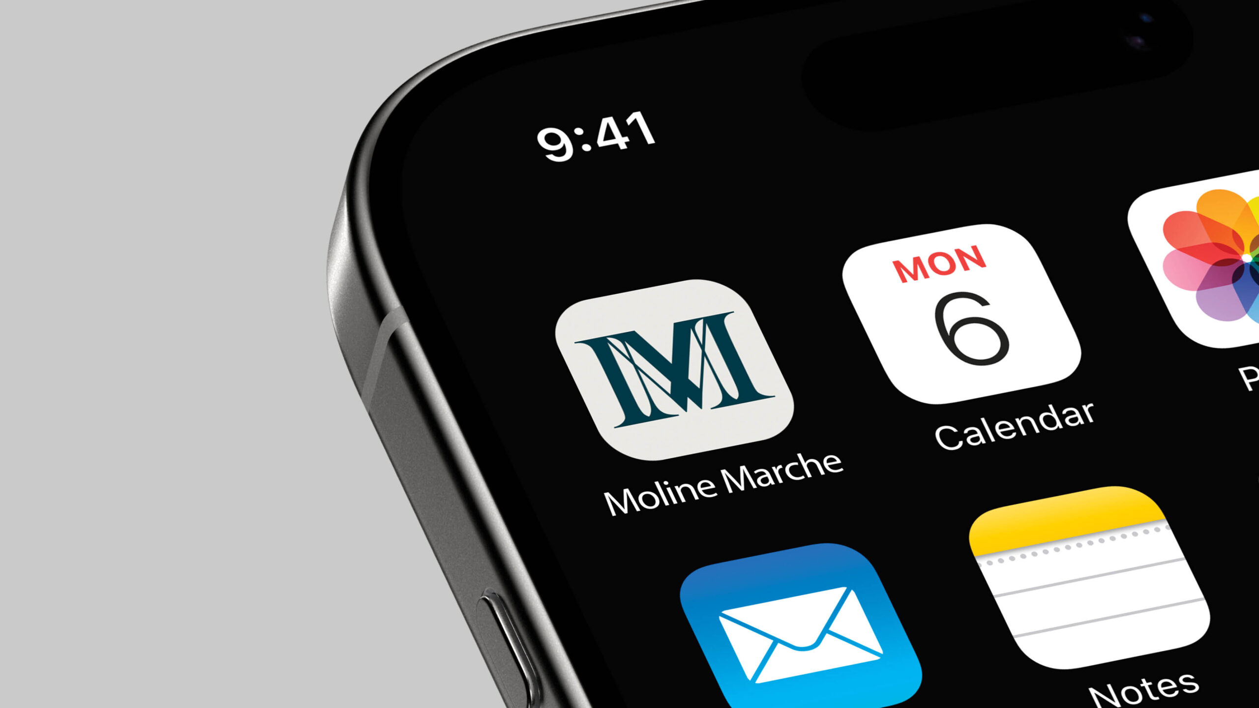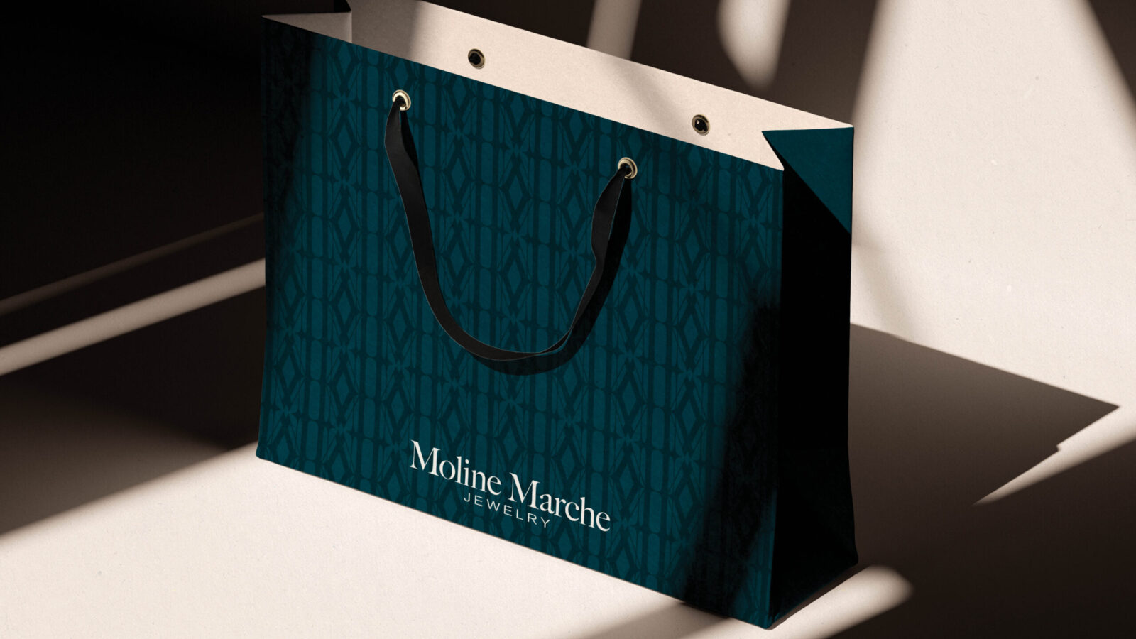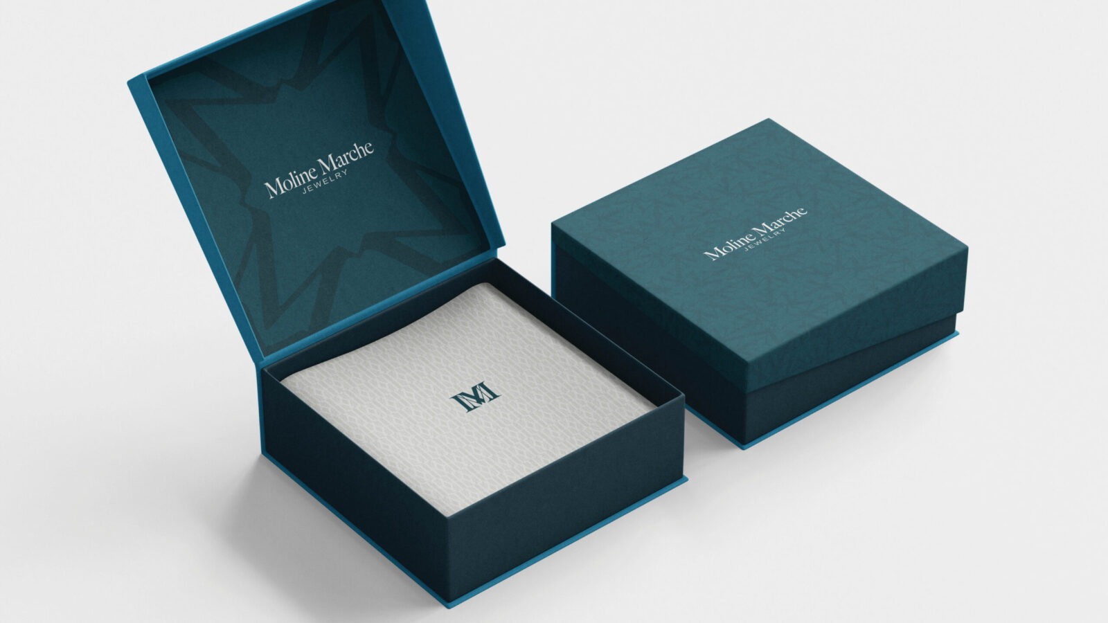 Moline Marche’s core color palette of sapphire blue and soft cream conveys maturity, luxury, and responsibility. Brand color is not only limited to these colors, but evolves colors through layered transparencies, evoking the clarity and depth of diamonds. This subtle play of opacity and form ensures consistency while maintaining visual richness throughout the brand.