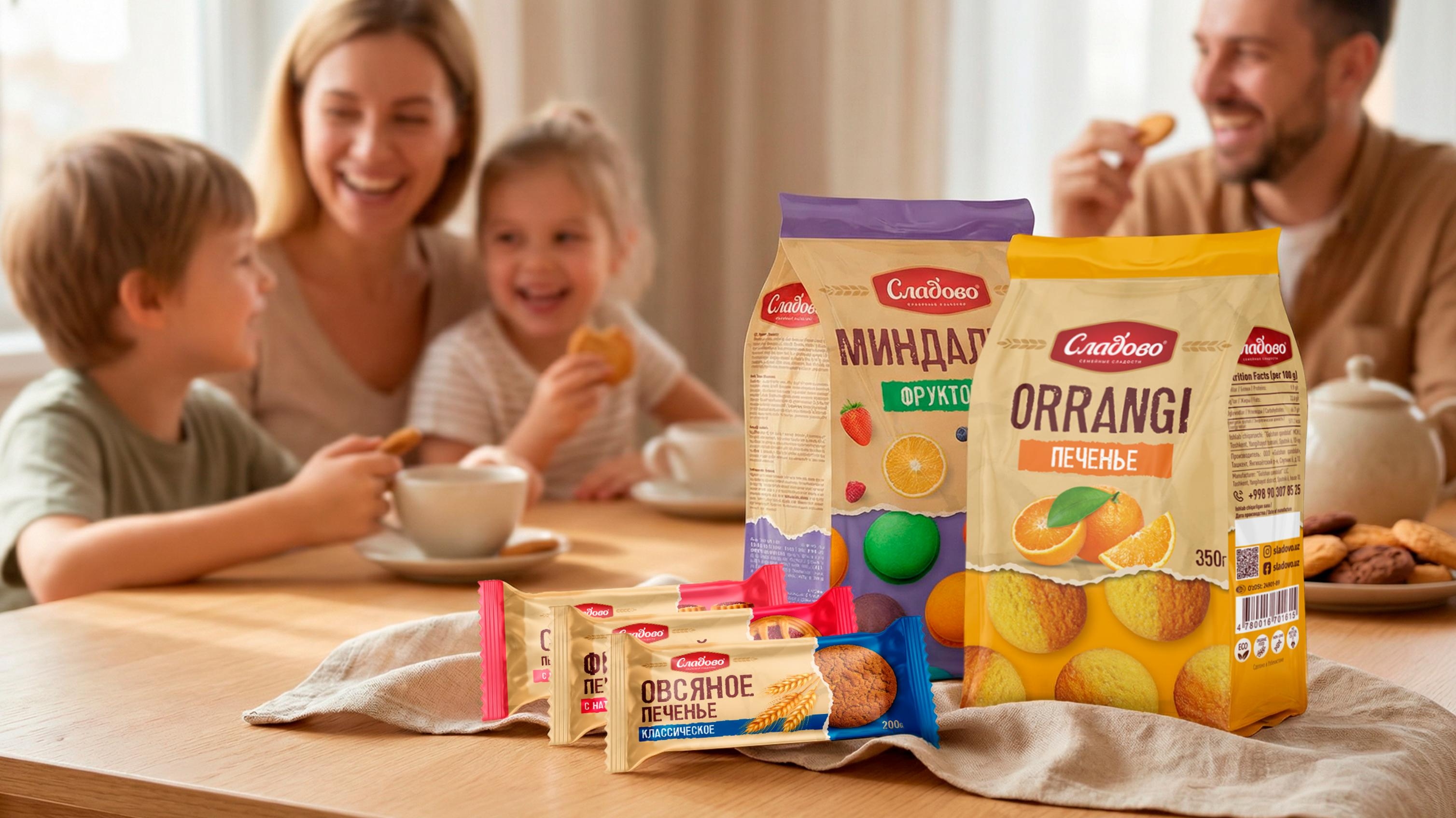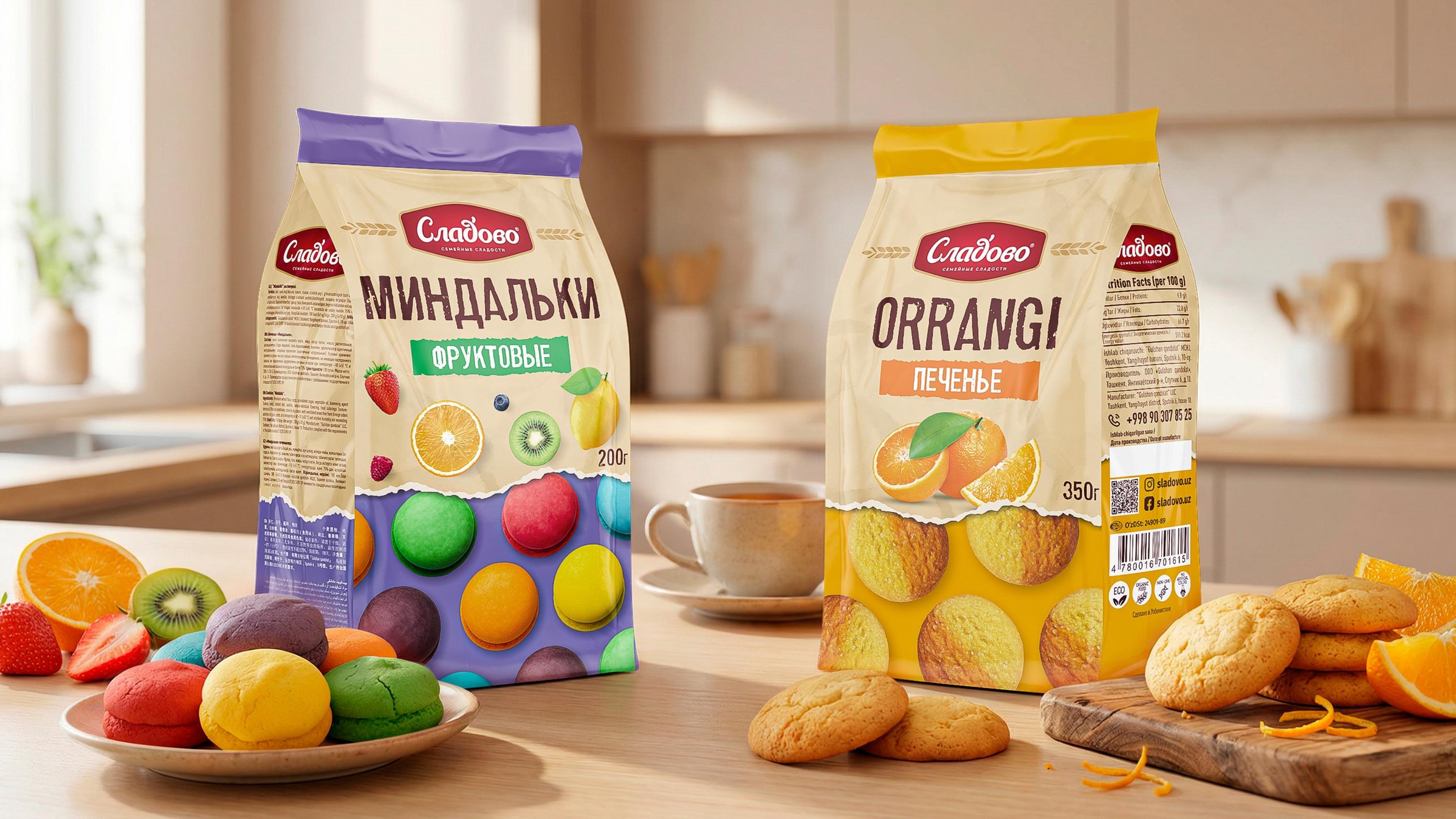 - Keywords: packaging design, branding, Sladovo, cookies, confectionery products, cookie packaging design, sweets packaging, Uzbekistan market, FMCG design, food packaging design, retail packaging, corporate identity, product positioning, USP, JTBD, consumer experience, marketing, design agency, supermarket packaging, visual product identity