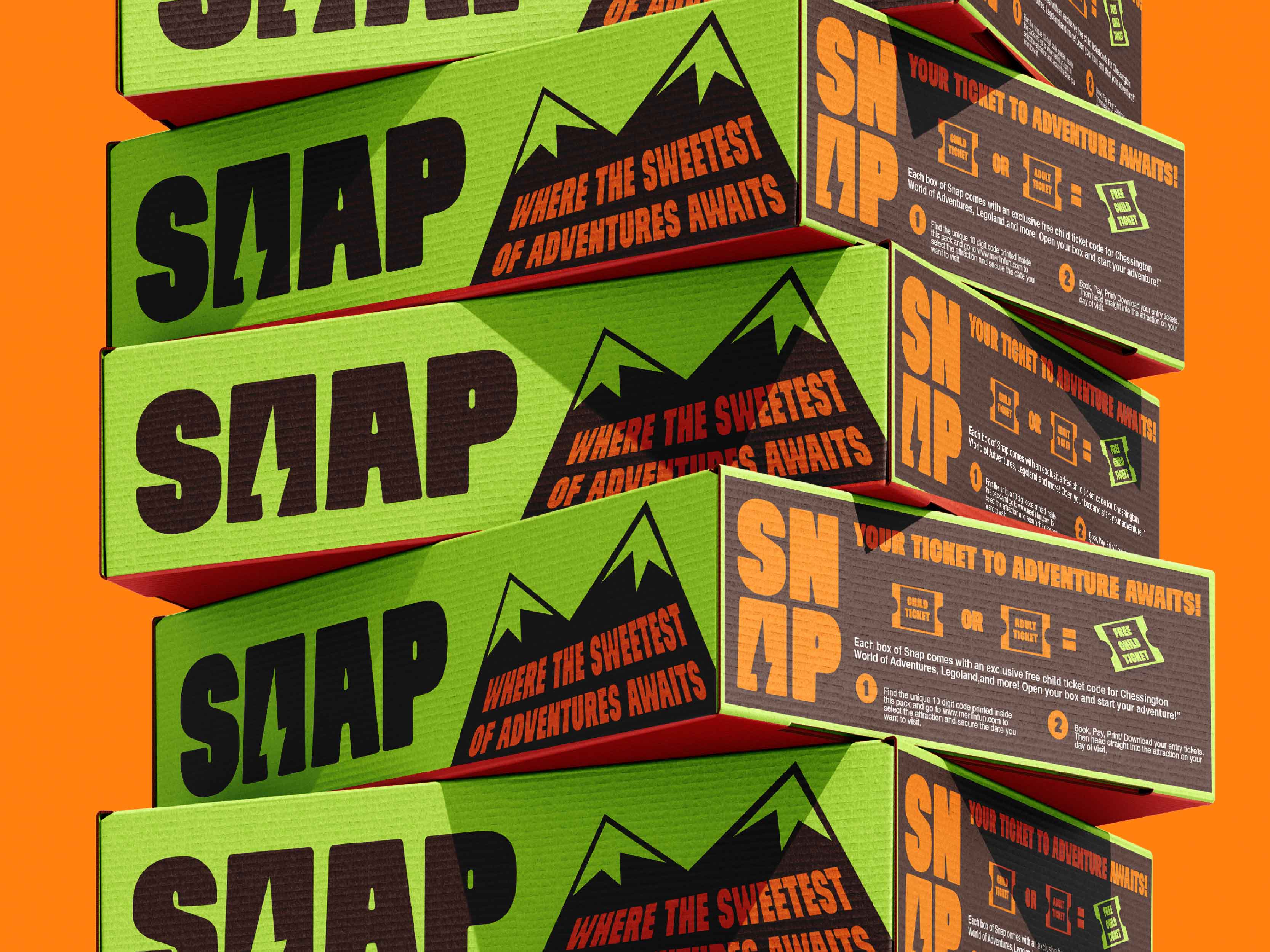 The visual direction for Snap was built around the idea of a sensory adventure. I integrated a lightning bolt into the “A” of the logo to represent a spark of excitement – a moment of joy when a kid bites into their favorite treat. Bold, chunky typography gives the brand presence and playfulness, while remaining clear and legible even at smaller sizes. The goal was to make something that looked as fun as it tasted.