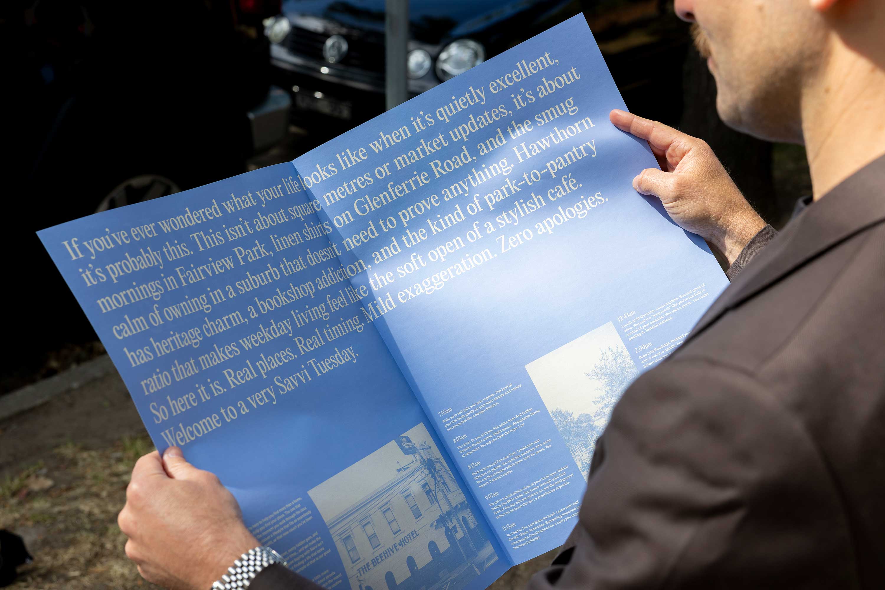 We shifted the lens entirely. Instead of photographing apartments, we photographed the suburb. The coffee shop around the corner. The Saturday morning farmers market. The walk to the train. Savvi wasn’t selling an apartment, it was selling a lifestyle, and everything we shot had to reflect that.