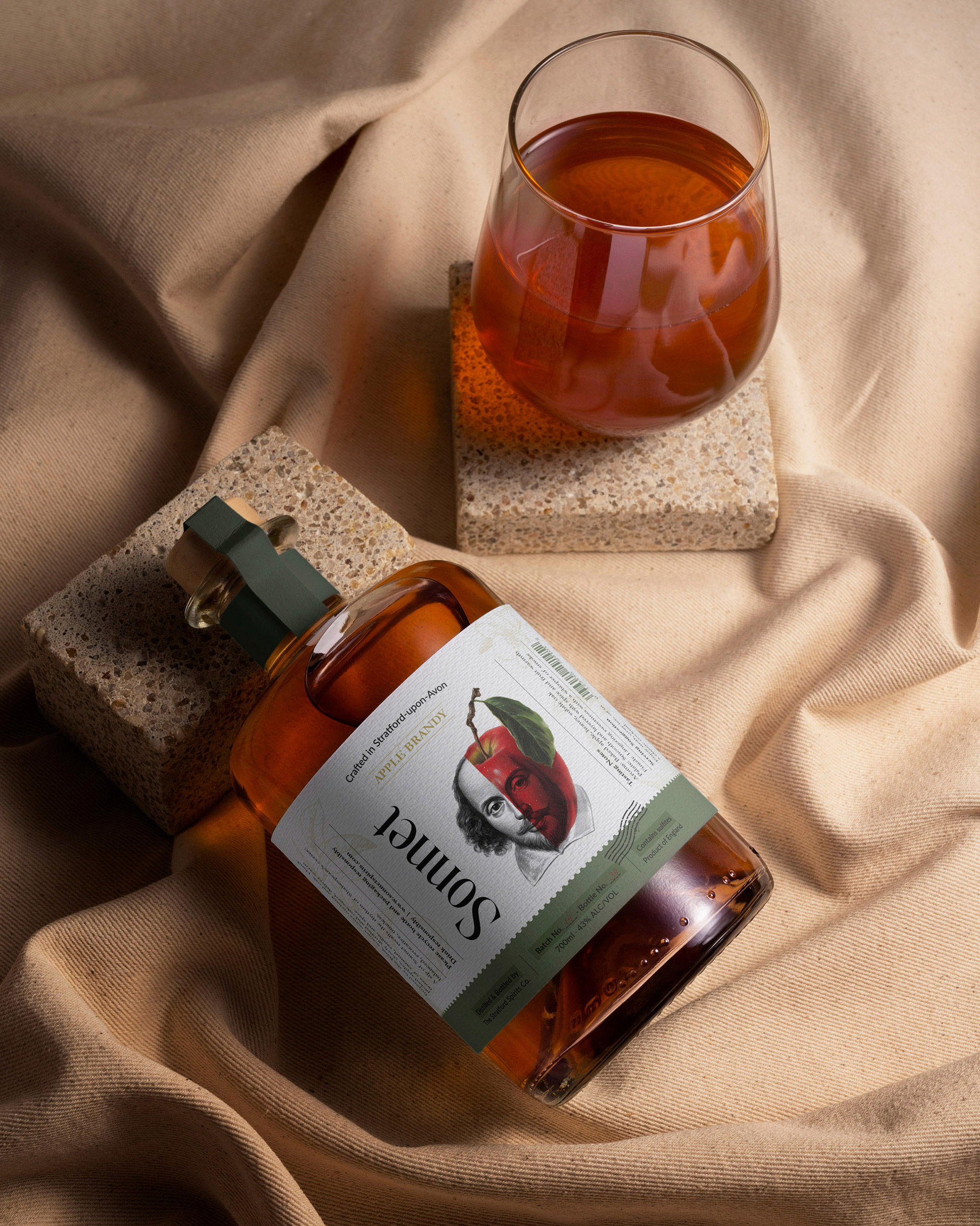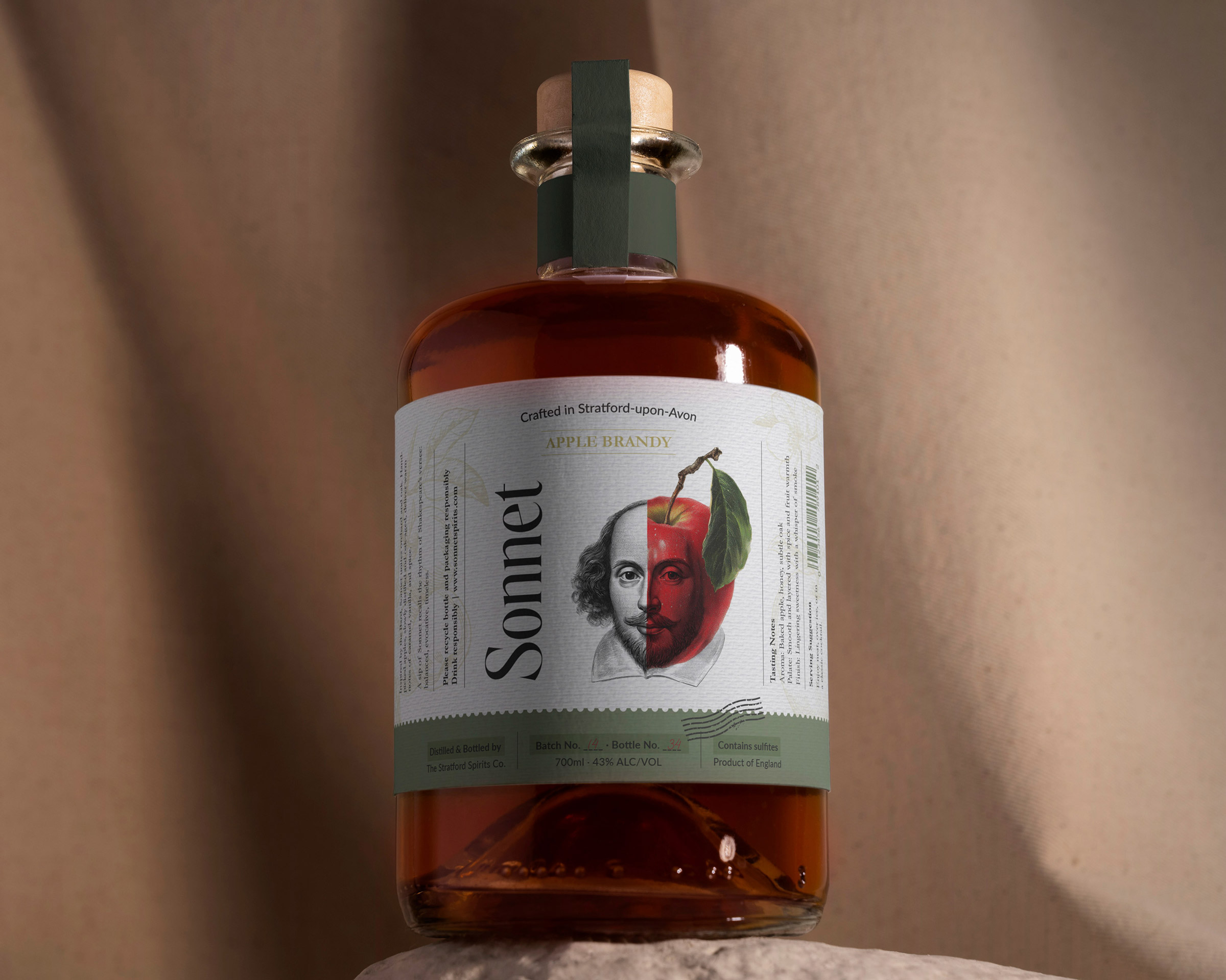 Sonnet is a premium branding and packaging concept that brings William Shakespeare’s legacy into the world of modern craft distillation. Set against the backdrop of Stratford-upon-Avon, the project explores how 16th-century heritage can be translated into a sophisticated, contemporary distillery identity. The goal was to create a visual bridge between the Elizabethan era and today’s luxury spirits market, treating the bottle as a piece of functional art.