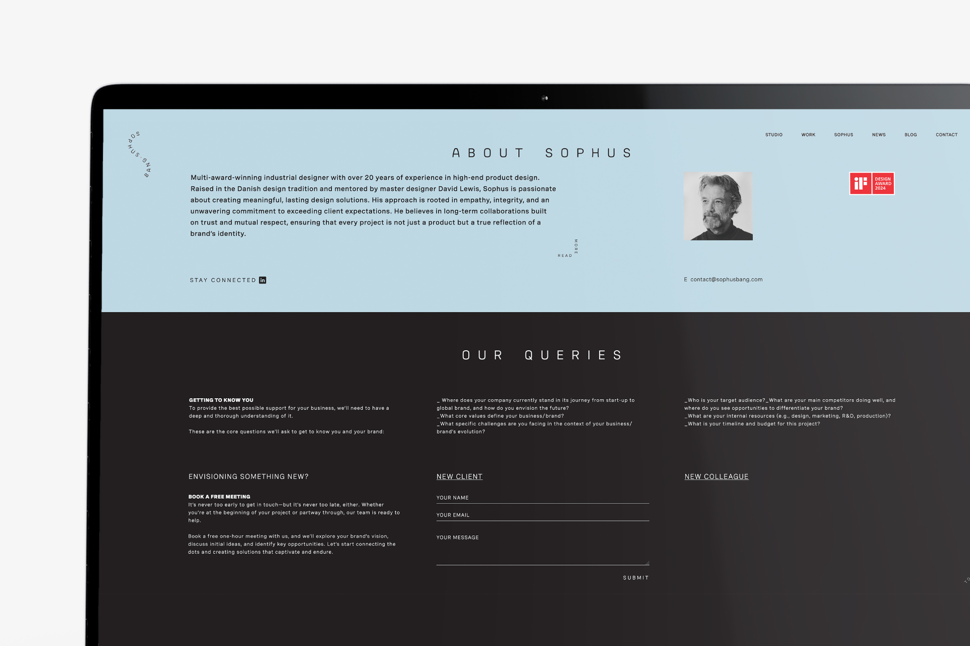 He needed an identity that reflected his timeless approach to innovation, minimal yet meticulous, innovative yet deeply human. With an uncompromising eye for detail and deep respect for Nordic simplicity, Sophus values authenticity and function over anything showy or self-indulgent. At the same time, he embraces a subtle playfulness that keeps his work fresh.