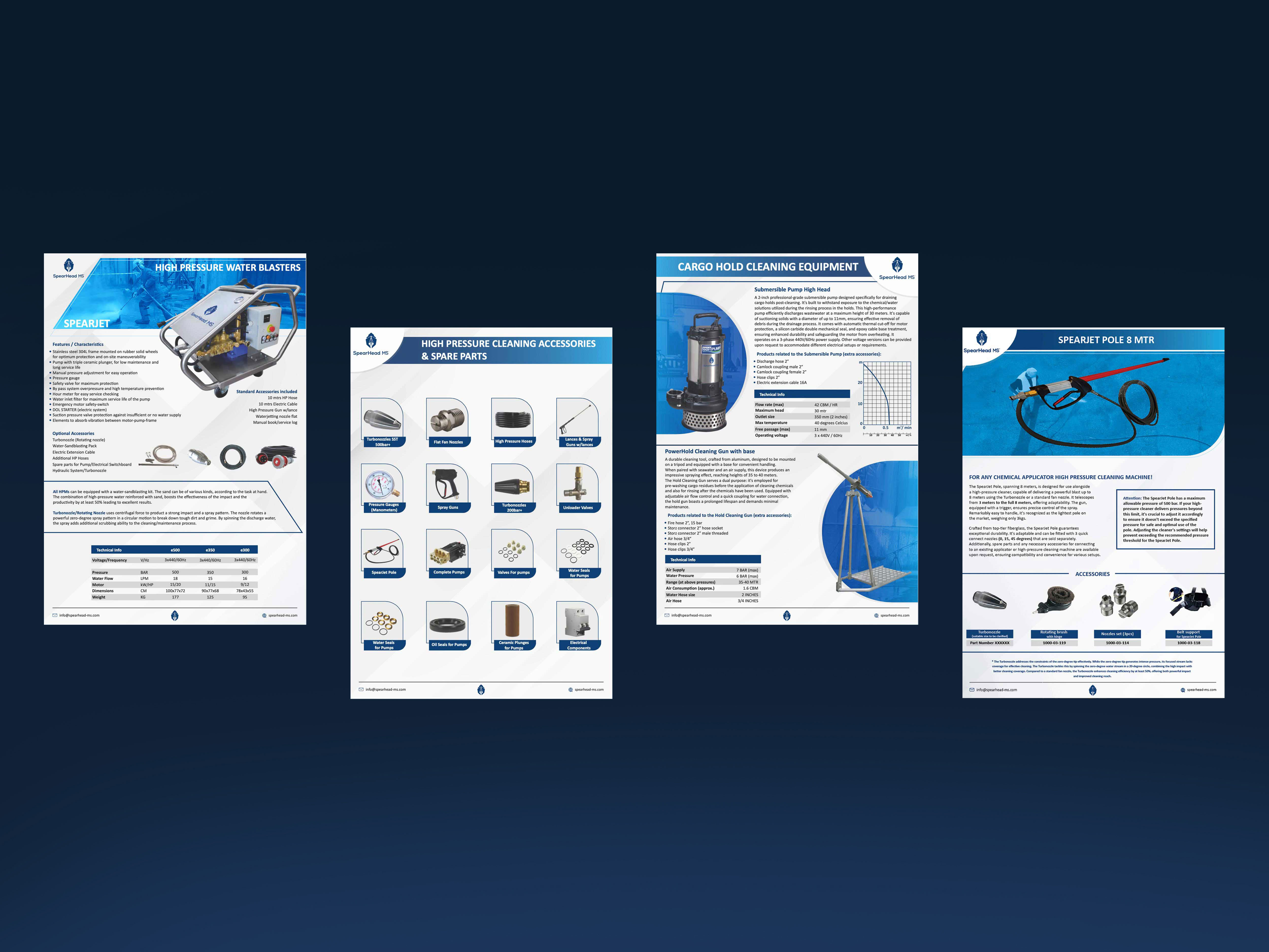 Beyond the logo, the visual system is built for real-world use. The typography prioritizes readability and authority, while the color palette draws from marine and industrial environments, reinforcing trust and professionalism. Applied across stationery, equipment, and containers, the identity functions as a reliable visual system rather than decoration, positioning SpearHead MS as a dependable, long-term partner within the industrial cleaning sector.