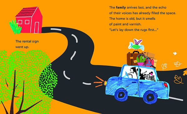 The illustrations are created using mixed techniques—markers, collage, and extensive handmade digital processing—forming a second, parallel narrative that evolves organically from the cover to the final spread. This visual storytelling allows children to explore ideas of scale, from the smallest to the infinite, and to understand home as something fluid and ever-changing.