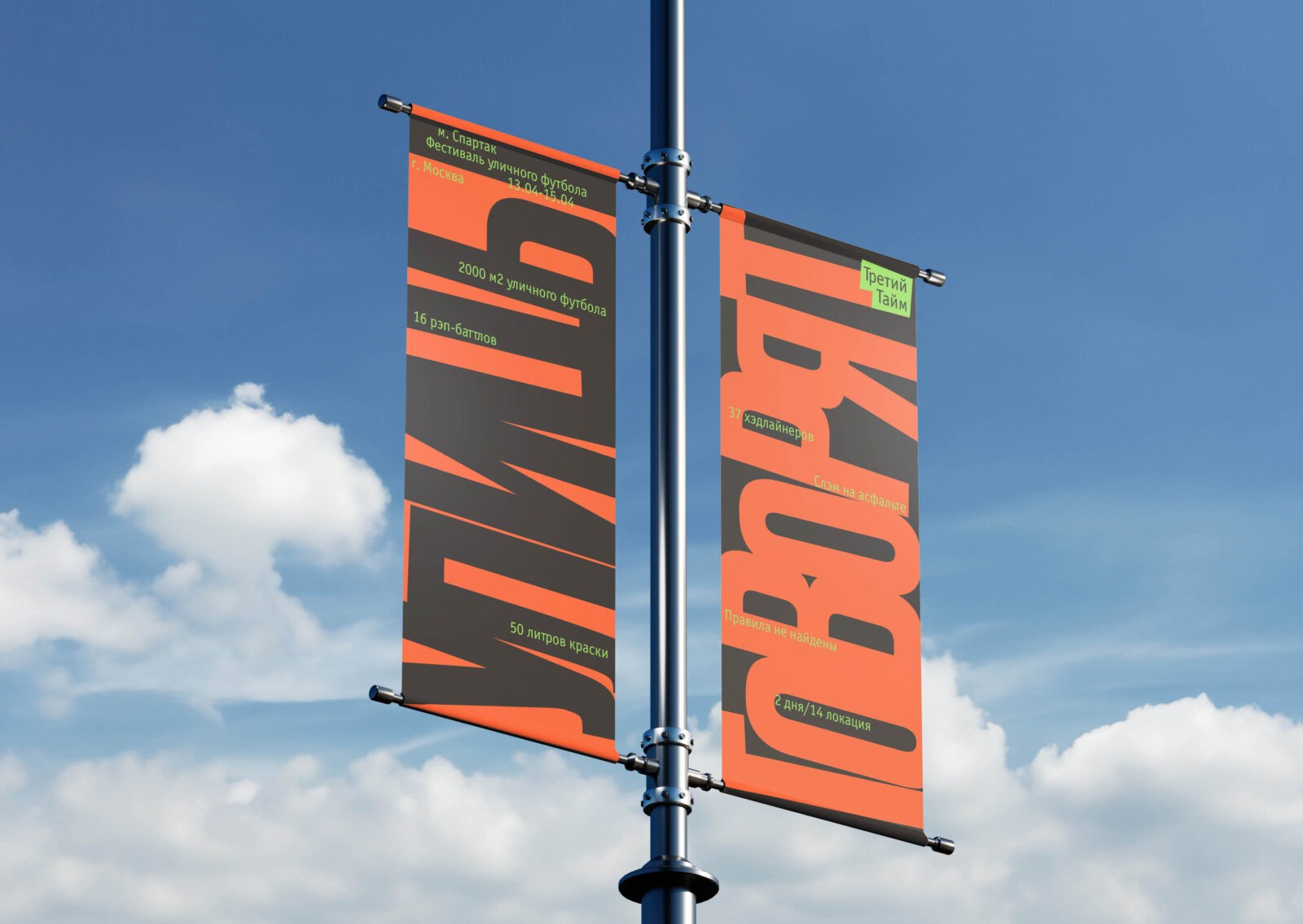 This project develops the visual identity for a street football festival, built on a typographic system that translates the essence of the game into graphic form. The central metaphor is expressed through elongated, slightly tilted letterforms: they resemble a crowd of supporters pressed together on the stands, leaning, moving, and vibrating with shared energy. Each letter becomes a body in motion, and together they form the visual equivalent of the collective passion that surrounds football culture.