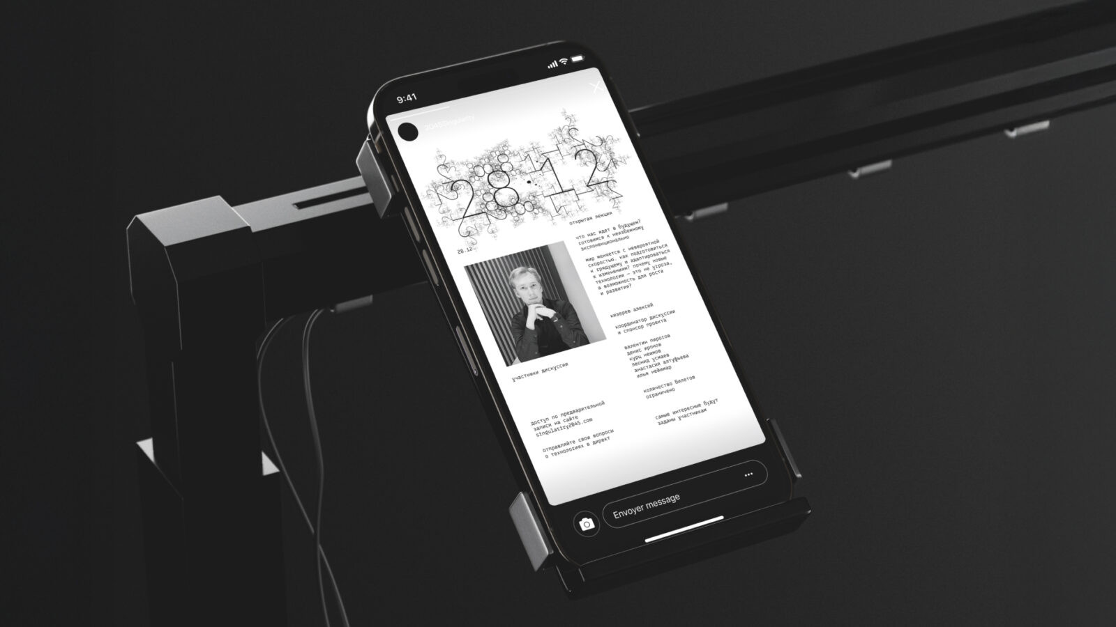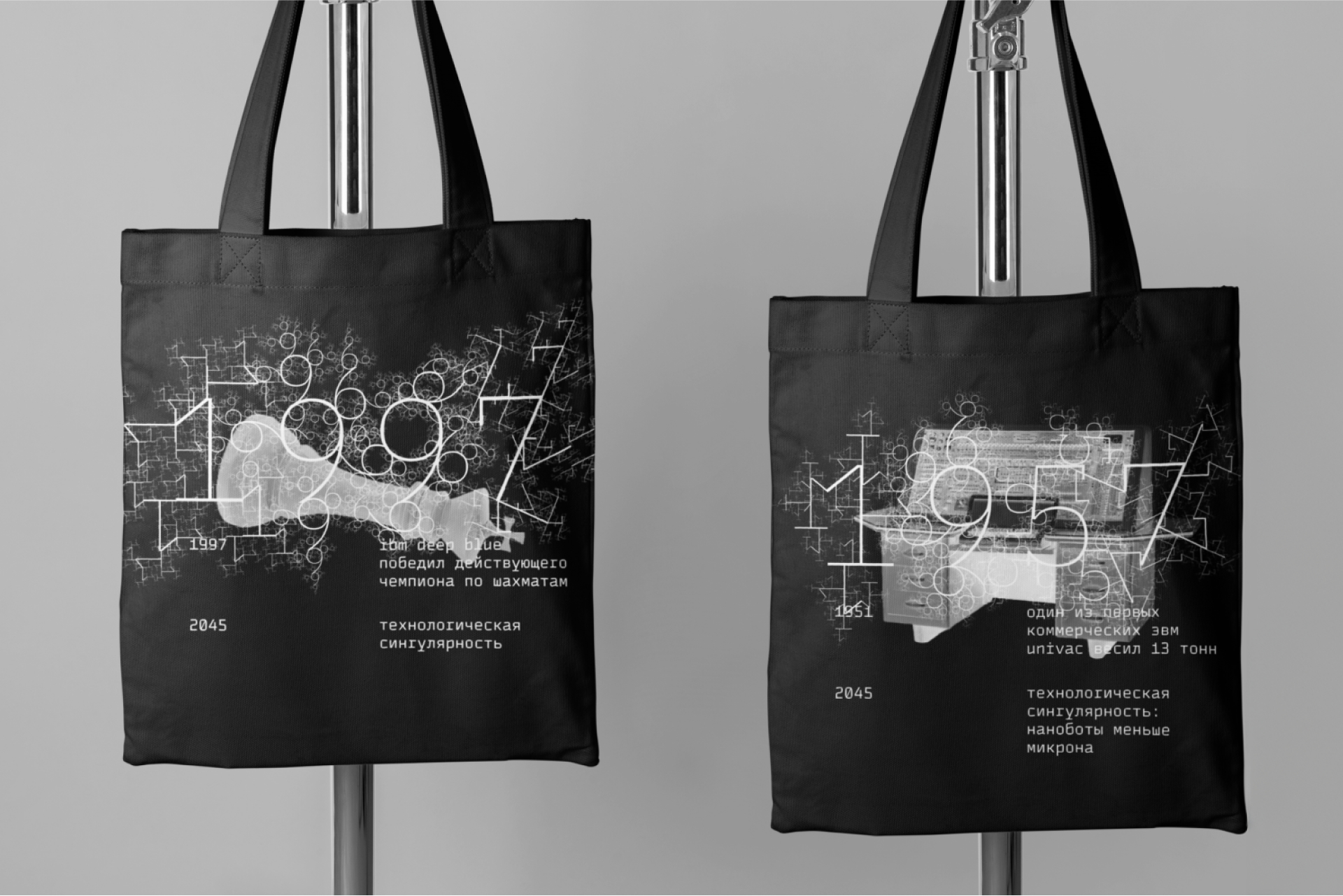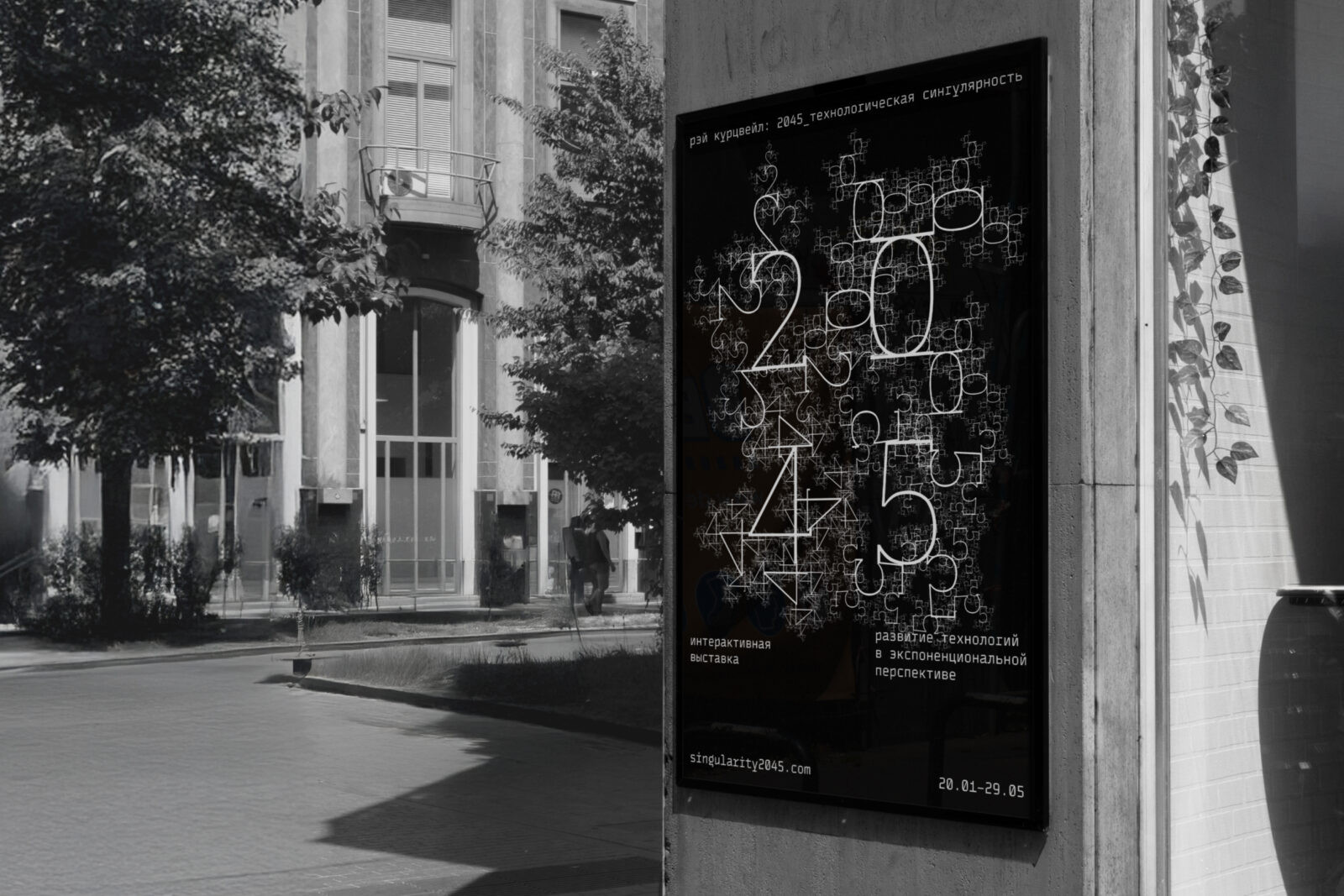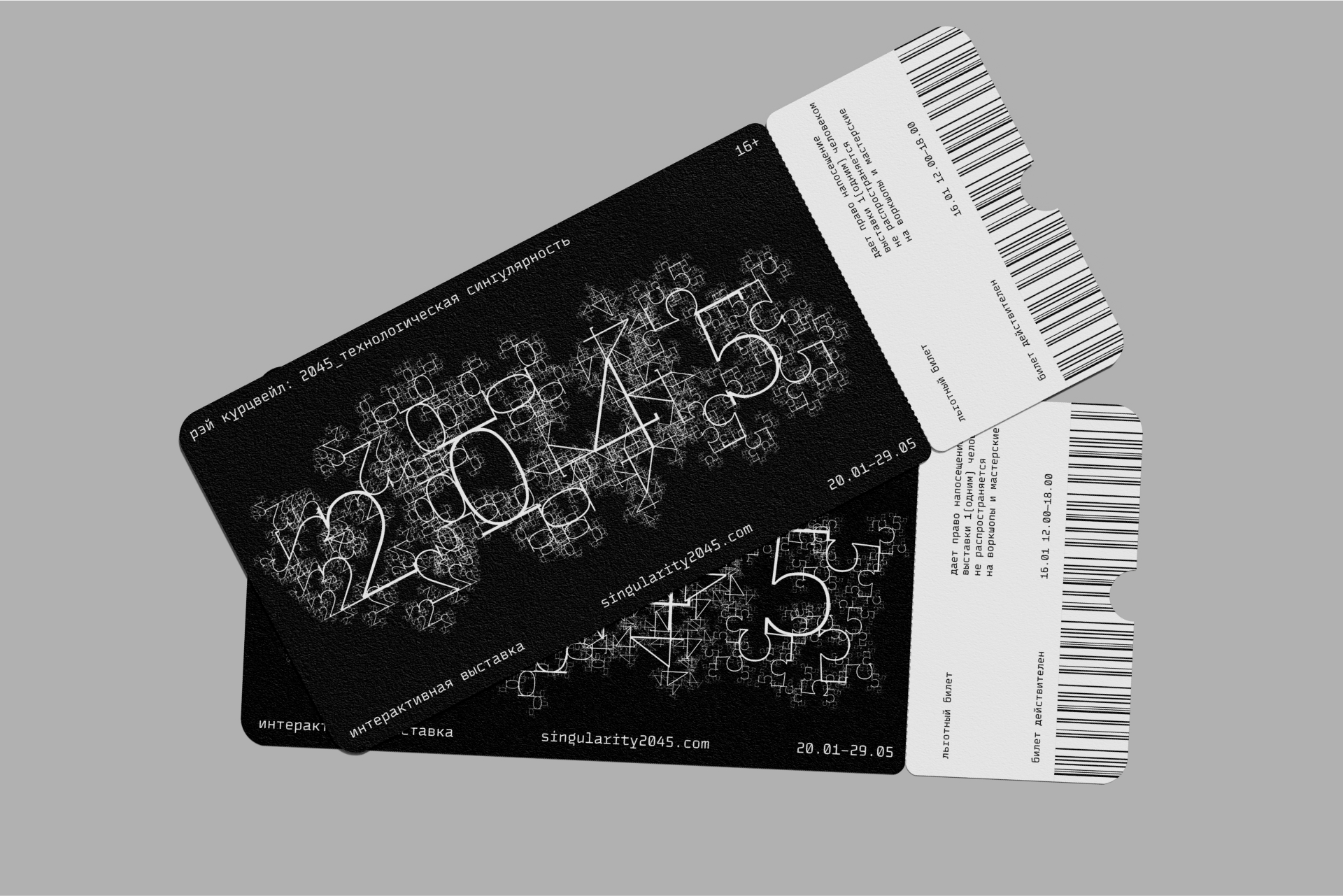 The project takes the form of an interactive exhibition designed as a timeline that traces the evolution of technology from the present day to the year 2045. It showcases key historical inventions, innovations currently in development, and speculative predictions about the future of human–machine integration. Alongside the exhibition, the project includes a distinct visual identity rooted in its conceptual themes.