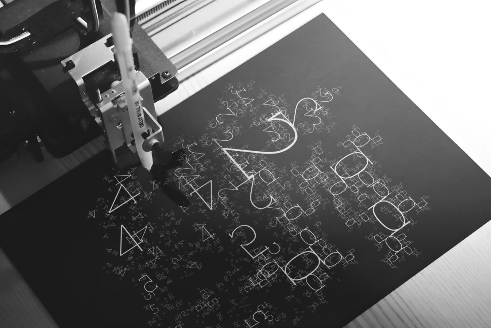 This visual design strategy aligns with Kurzweil’s description of a post‑human future, where human brains connect directly to cloud computing and biotech enables radical life extension. The font’s form suggests the transcendence of organic limits—mirroring how singularity represents humanity’s next evolutionary leap. In sum, the fractal script not only visualizes exponential growth but also alludes to automation, self‑improvement, and the merging of human and machine intelligence that defines Kurzweil’s vision of the singularity.