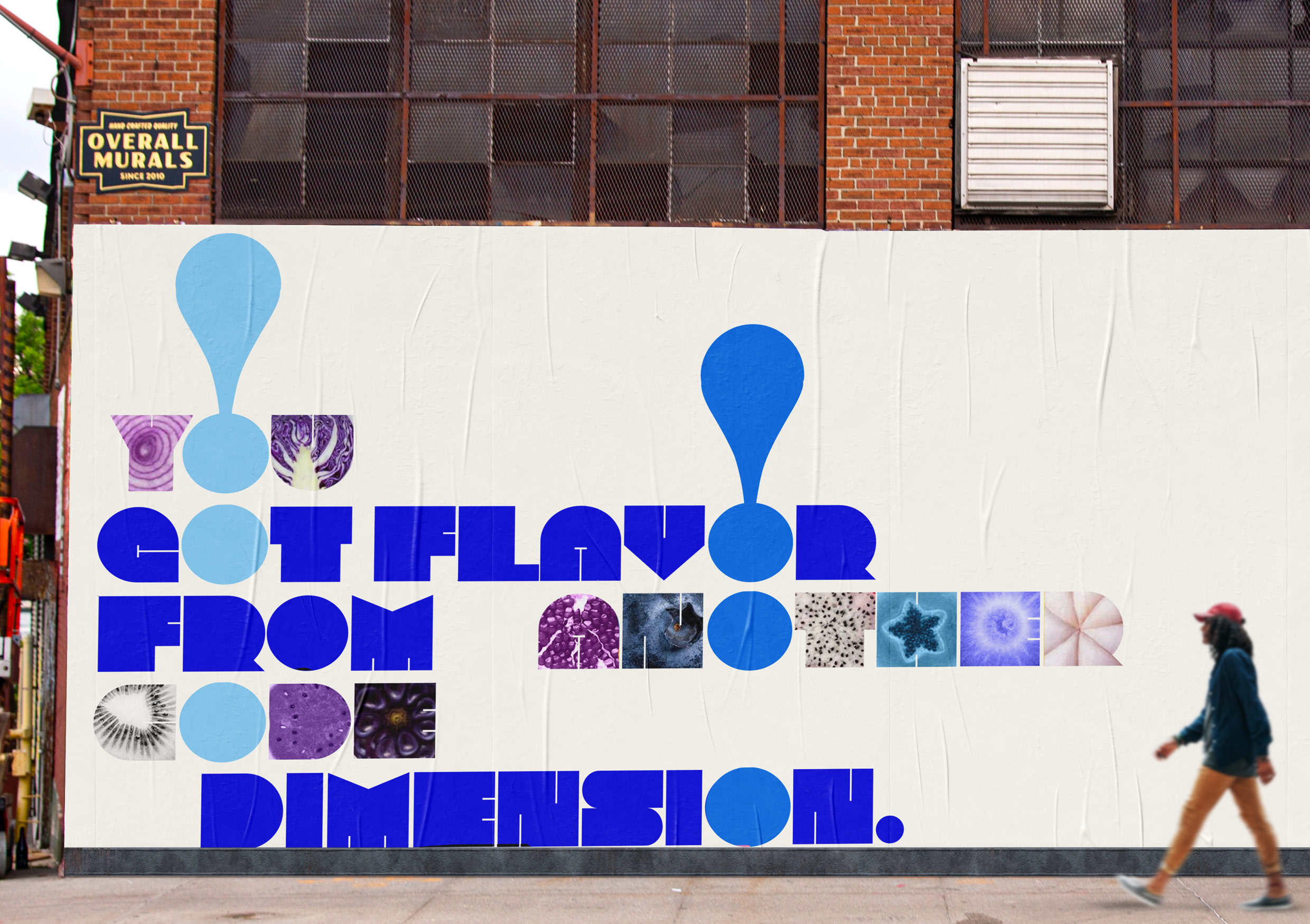 The graphic metaphor is based on pipettes, from which drops of flavor fall directly into the jars.
