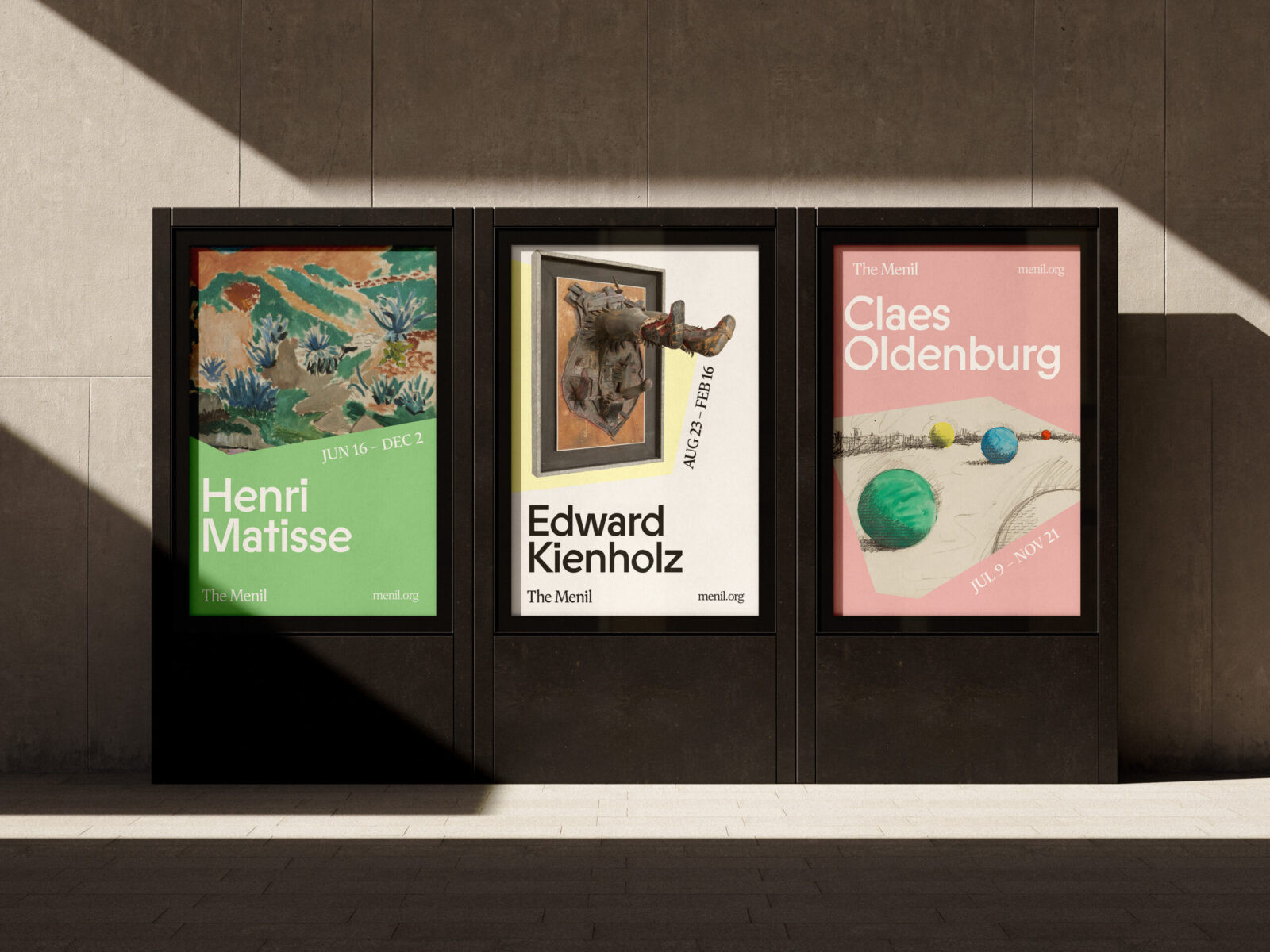 Through thoughtful application across stationery, signage, digital platforms, and wayfinding, this identity captures both the rational elegance and warm eclecticism that define The Menil’s legacy. The system honors the museum’s architectural heritage while celebrating its approachable, community-focused spirit.
