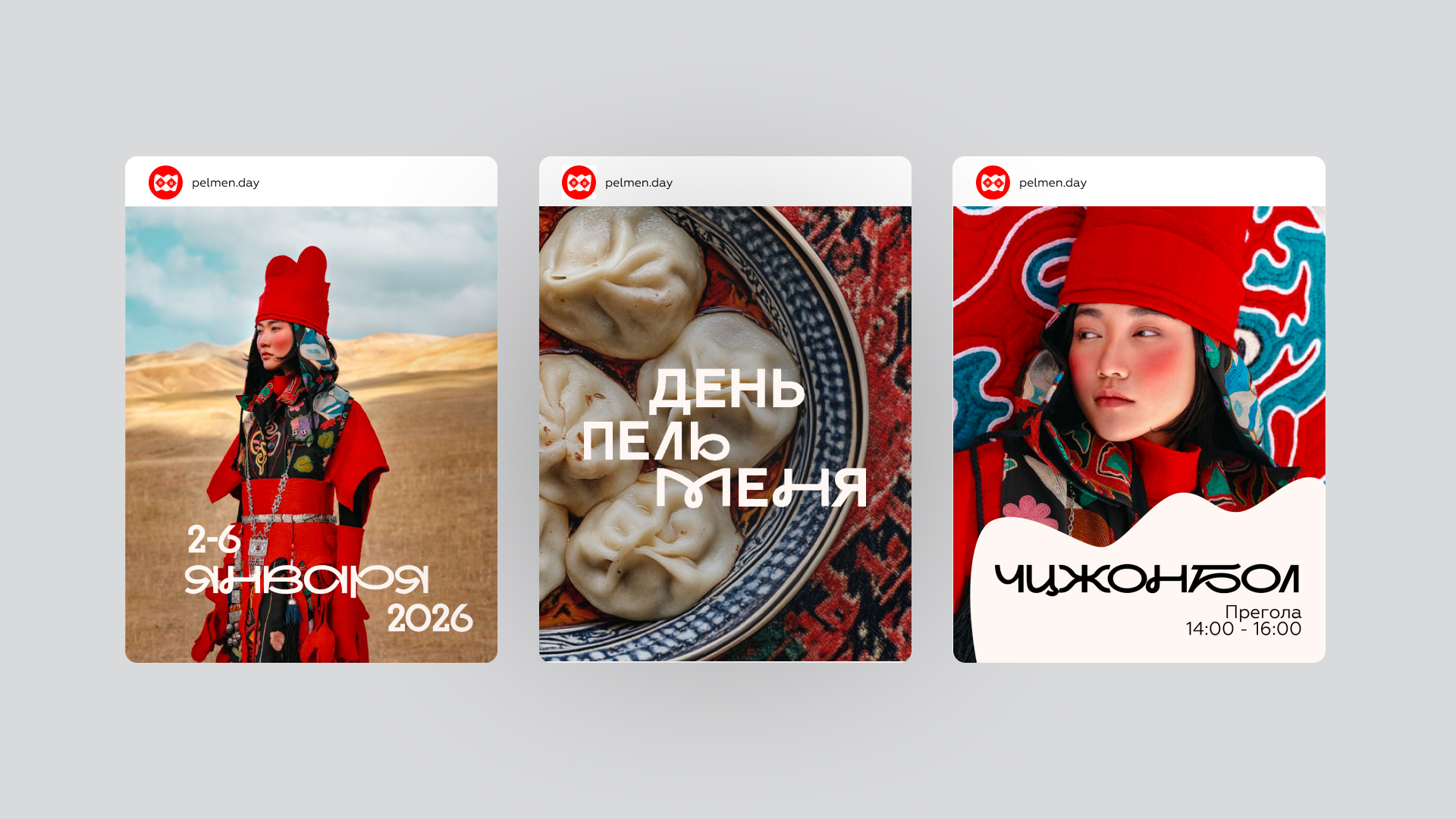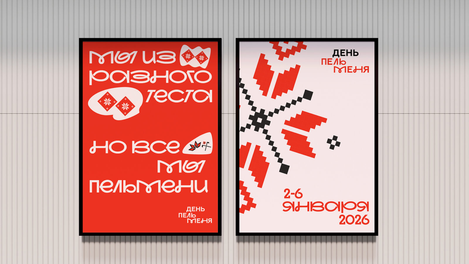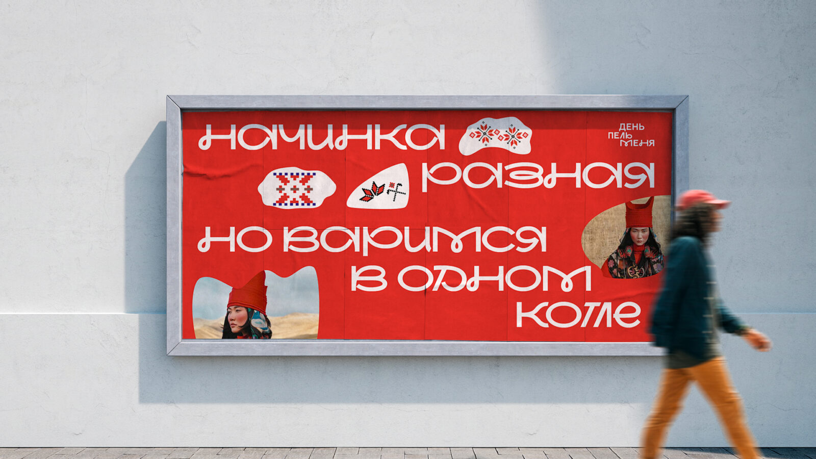 The idea is based on the well-known idiom: “made of different dough”. Udmurtia is indeed home to completely different people who are “made of different dough”, but they are all one nation with a unique culture and traditions. And the festival is a reason to remember this, because pelmeni is a generalized image of unity. The identity combines hand-drawn Udmurt patterns, abstract dumpling shapes, and molded typography. With the help of different dumpling shapes and patterns that symbolize the filling, we convey the main idea: “We are made of different dough, but we are all dumplings.”