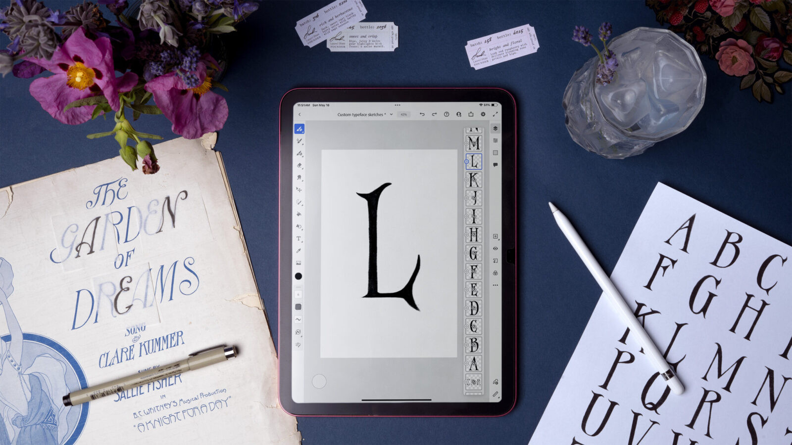 The brand’s foundation is Juniper Display, an original typeface drawn specifically for this project. Its design is rooted in authentic Art Nouveau forms: the ornamental curves, the sense of movement, the organic, human asymmetry. But rather than capturing just the appearance of era, Juniper Display captures its spirit. Art Nouveau was a movement born from the eternal optimism of the years that predated both World Wars—it was a time where anything was possible, when humanity was something to be celebrated, and the connection between pen and nature was heralded as the most beautiful of all. Today that bright-eyed optimism is something that must be found in smaller moments, like sharing a toast with life’s companions. Juniper Display encapsulates that truth: it balances elegance with earthiness, echoing the tension between the ethereal romance of Art Nouveau and the grounded, botanical nature of gin-making. Every curve and ligament was intentionally shaped to feel both cultivated and slightly wild, as if the letterforms themselves were growing vines.