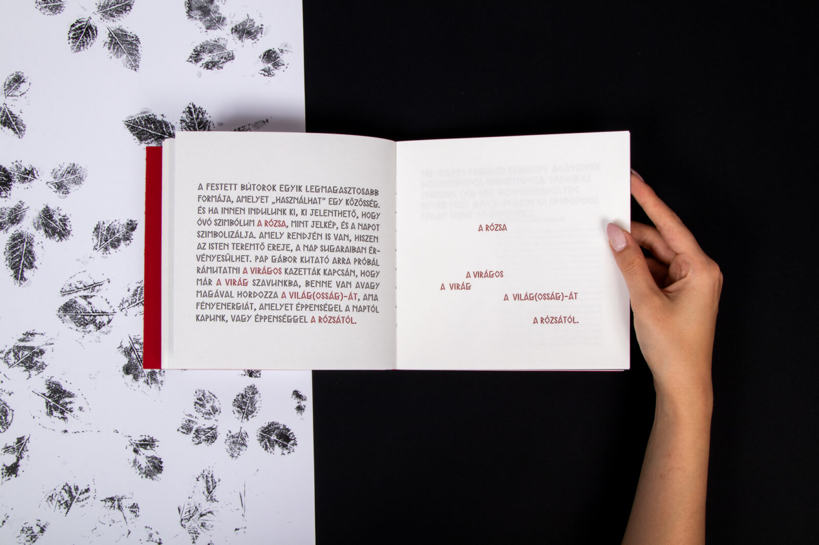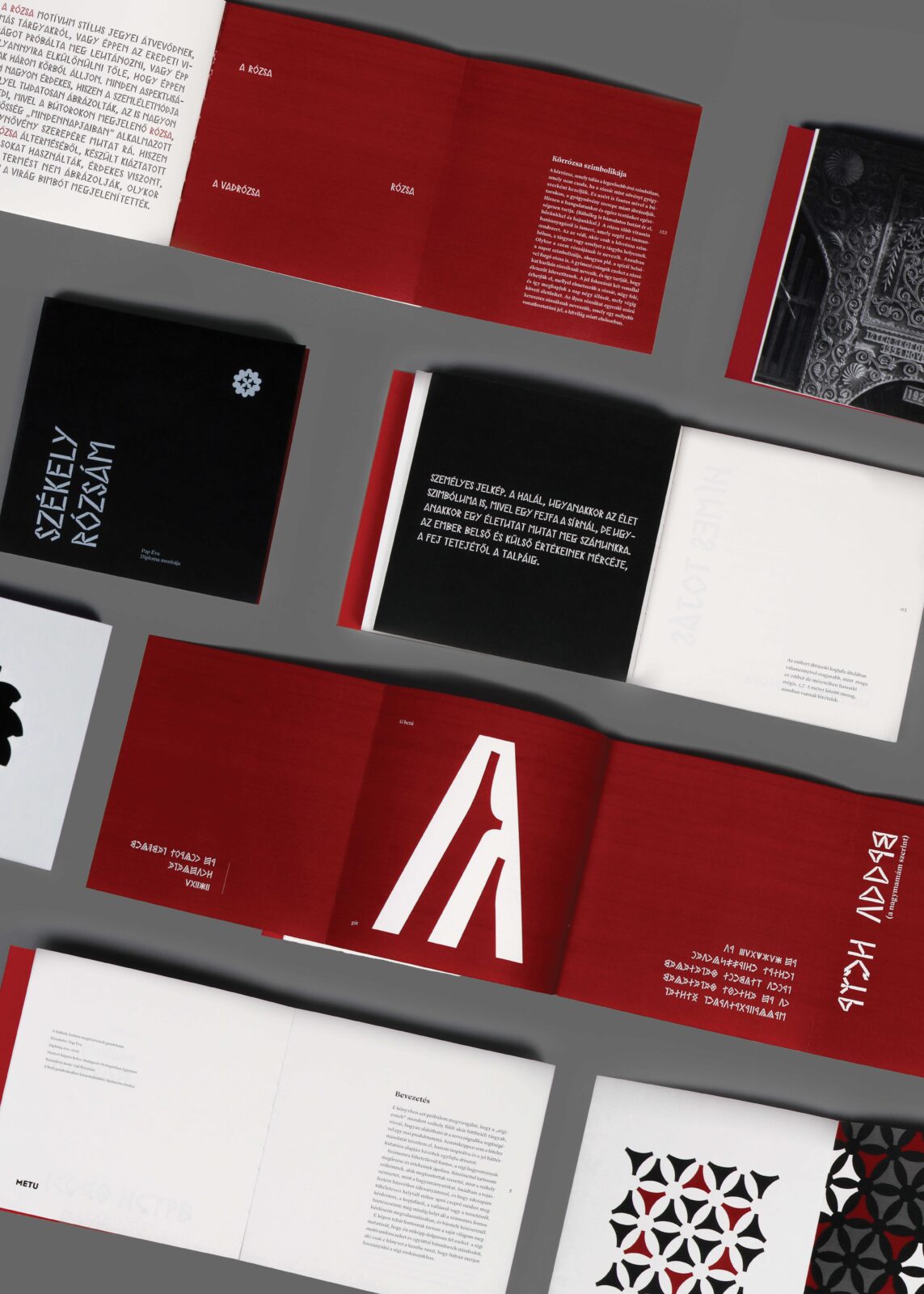 My project, which also serves as my thesis, is based on Székely (Transylvanian) folk art, and at the same time explores the question of personal identity. The central theme of my work is the search for the essence of Székely ethnicity and its preservation; a search I approached through its symbols and visual language. Focusing particularly on its visual world, I chose a single motif as the core of my research: the rose. This led to a comprehensive exploration of the rose motif as it appears in the Székely region. I complemented this with an examination of Székely alphabet script, which is also a distinctive feature of the region’s visual heritage. The publication is divided into two parts, each offering a unique perspective on the rose. Page by page, I aim to reinterpret the heritage of the past through contemporary visual forms, allowing it to become a living part of the future.