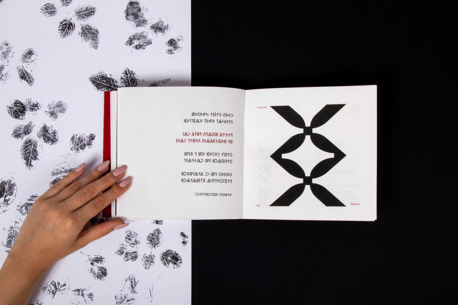 - Keywords: WBDS Student Design Awards 2025/26 , rovas alphabet or rovas runic, folklor, rose, book, artistbook, ink trap