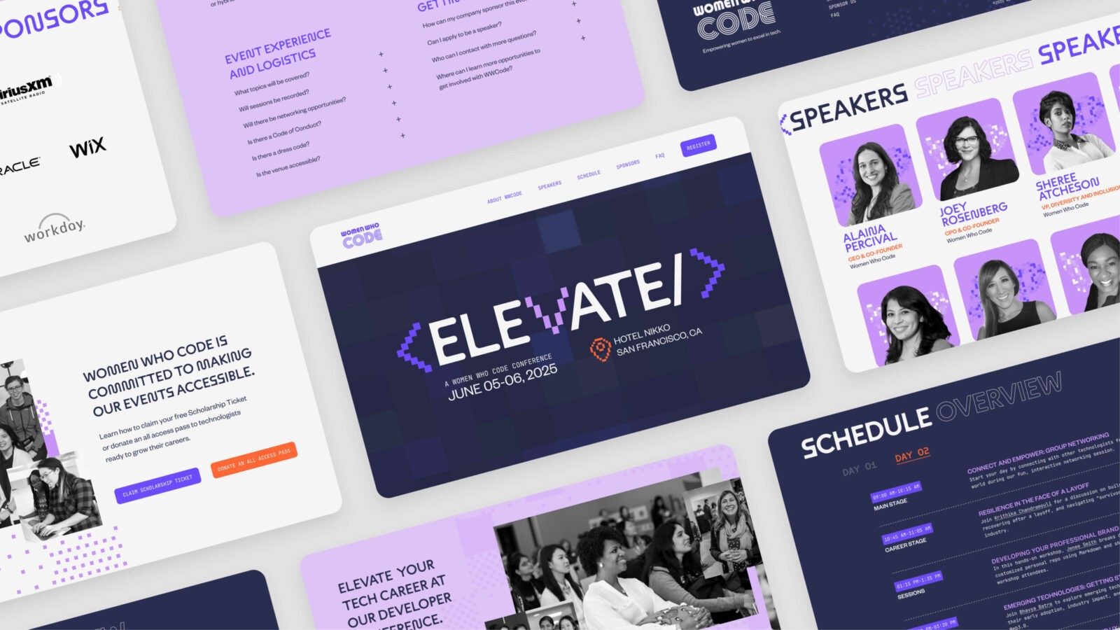 Overall, Elevate presents a tech-centric yet human brand expression, modern, bold, and inclusive, reflecting a conference built on professional growth, community, and collective empowerment.