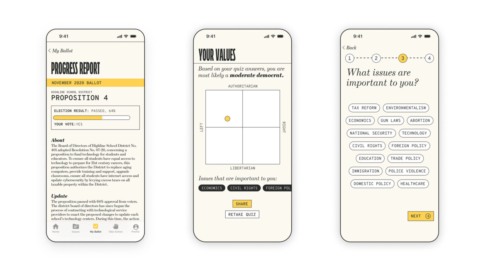 Beacon is an app designed to help voters stay informed in a clear, digestible way through custom voting guides, a curated news feed, and accessible civic action tools. In a media environment crowded with sensationalism and noise, Beacon offers a quiet alternative. It creates a space built around clarity of information and empowerment through small, meaningful actions. The goal is to make civic engagement feel approachable and doable rather than overwhelming or exhausting.
