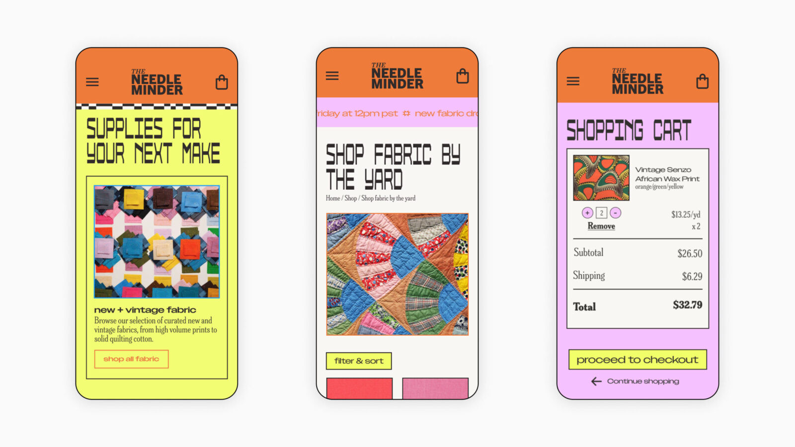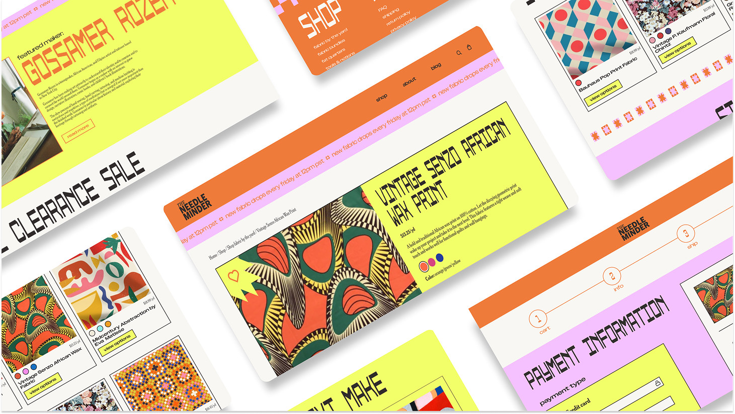 The Needle Minder began as an exploration of what quilting and hobby craft can feel like when the visual language is reframed for a new generation. Quilting often carries associations of nostalgia, softness, and tradition. I wanted to challenge those expectations by creating a brand identity and e-commerce experience that feels bold, contemporary, and full of personality. The goal was to build a space where younger makers feel seen and invited to participate, and where the history of craft meets the energy of modern digital culture without losing its sense of care.