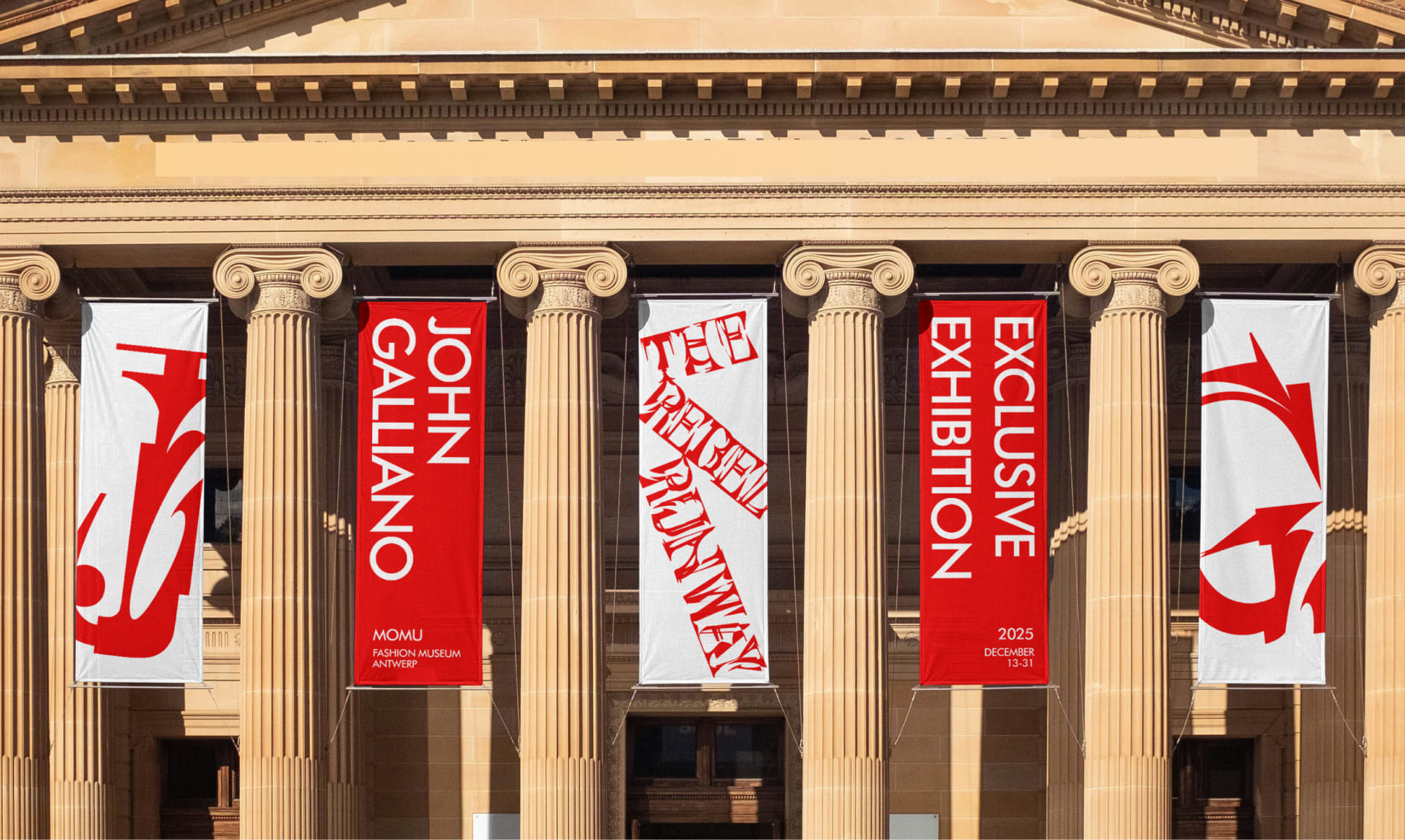 The objective of this project is to design a unique display typeface and apply it to the creation of a visual identity for an exhibition dedicated to the work of fashion designer John Galliano. The font should not exist as an isolated graphic element, but function as a core expressive tool that reflects the designer’s philosophy, aesthetics, and emotional intensity. Through typography, the exhibition identity must communicate drama, narrative depth, and a strong visual presence that immediately immerses the viewer in Galliano’s world.