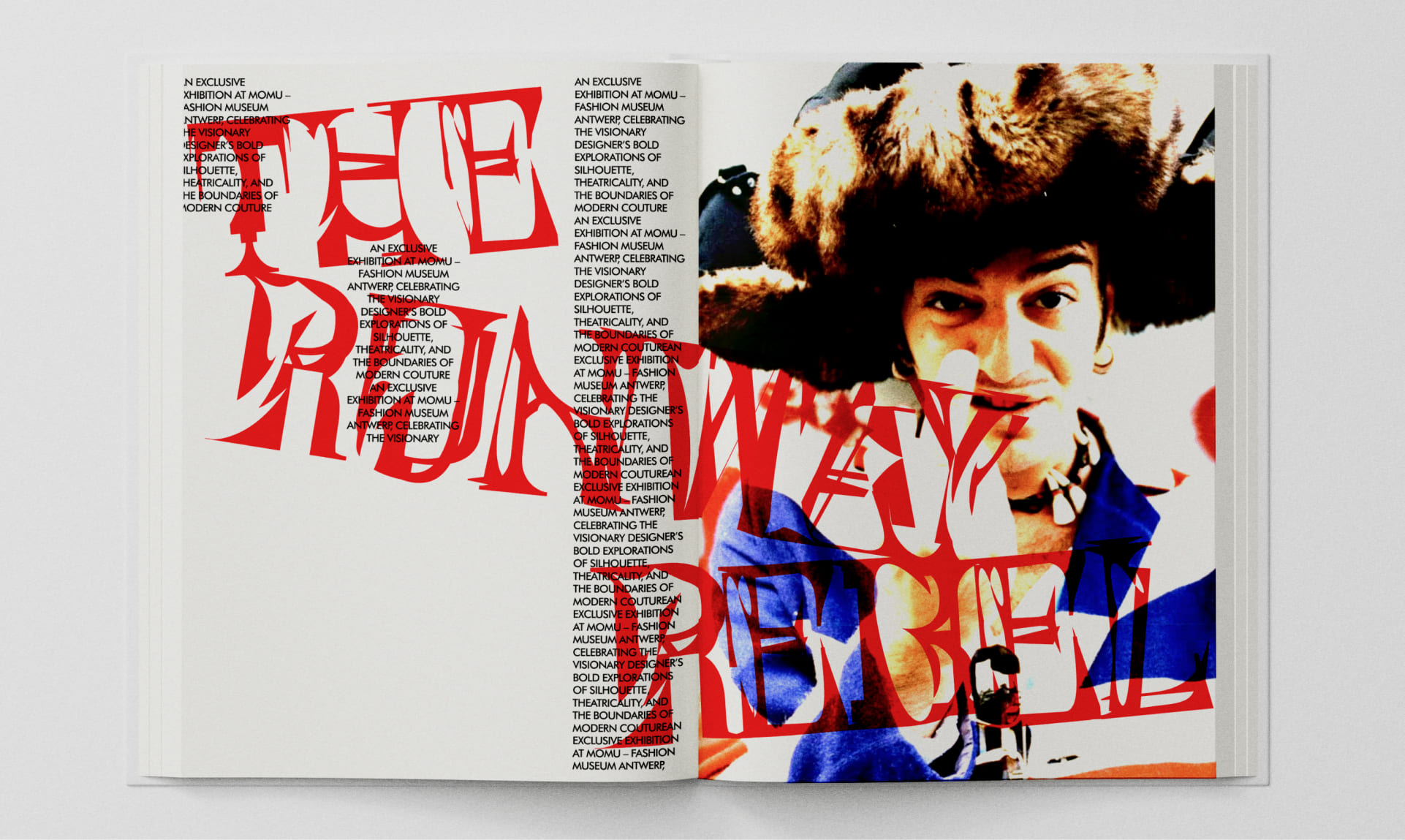 The display font designed for this exhibition must visually translate these ideas into typographic form. It should appear dramatic, layered, and slightly chaotic, reflecting the emotional intensity of Galliano’s work. While the overall impression may feel disordered or fragmented, the letterforms must remain precise and intentional, suggesting overlapping elements and complex construction. The typography should evoke theatricality and tension, balancing elegance with disruption. Ultimately, the font should embody a sense of drama and visual storytelling, capturing the spirit of John Galliano and serving as a powerful foundation for the exhibition’s identity.