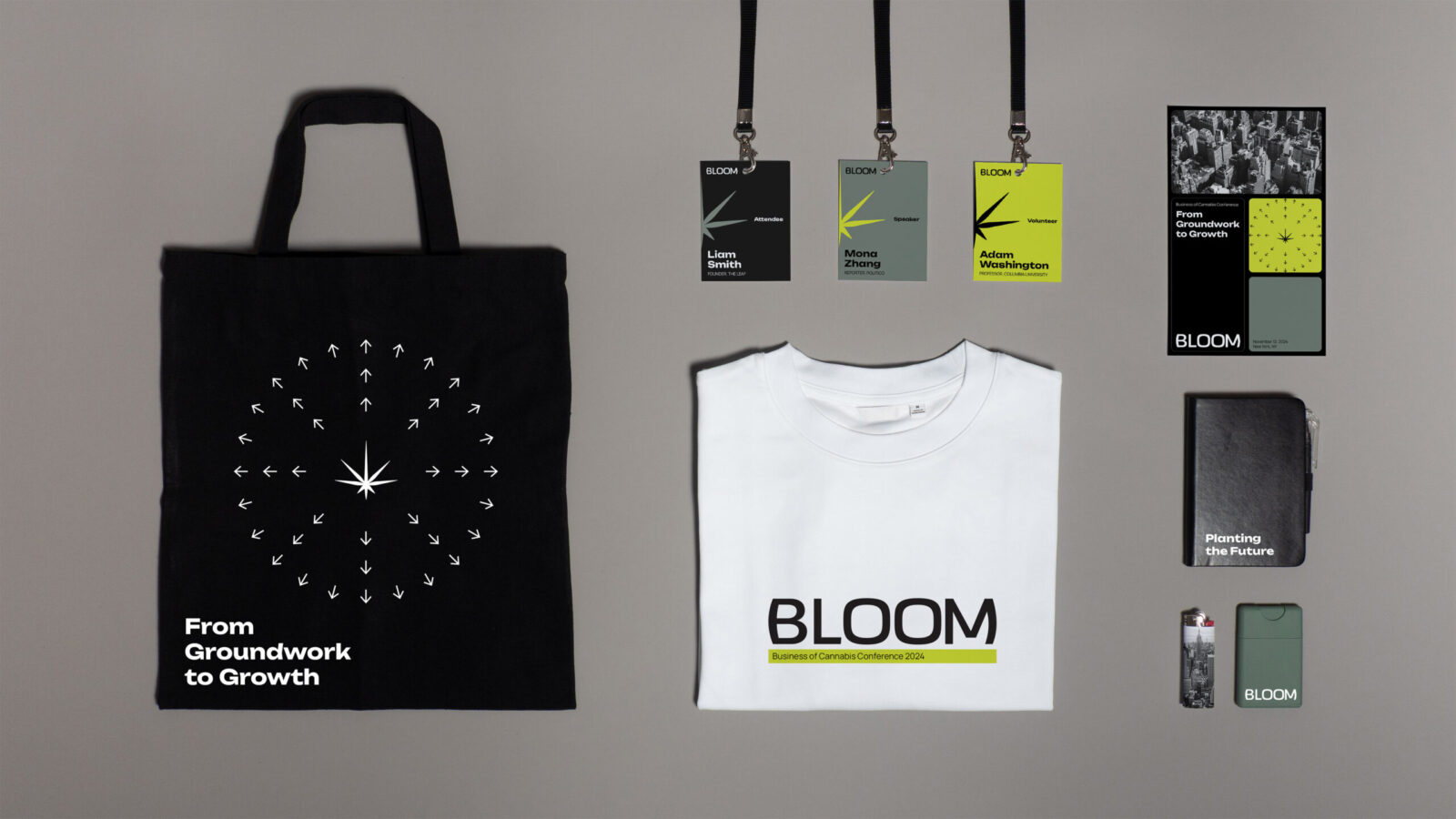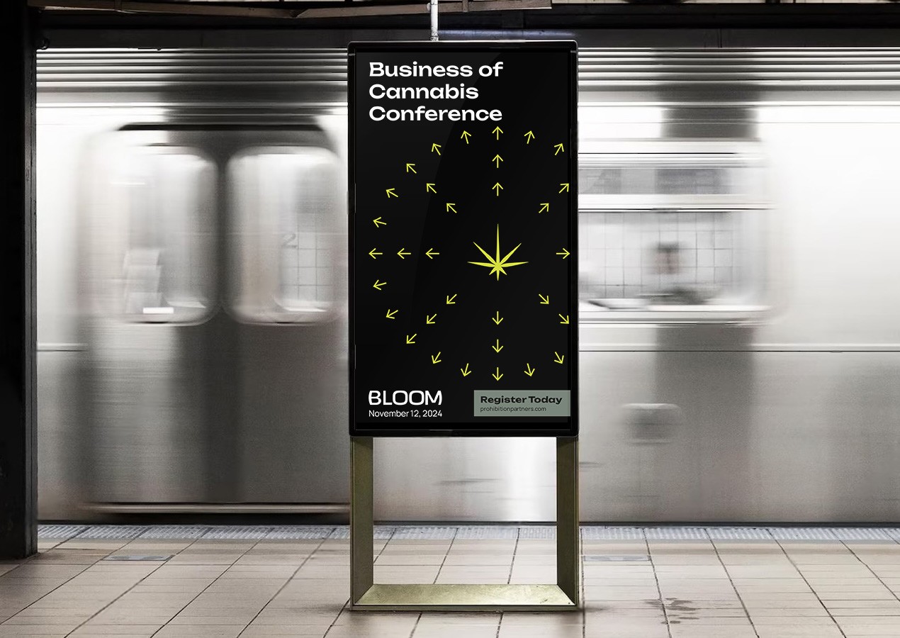 The overall design extends seamlessly into both print and digital applications, including the full redesign of the Business of Cannabis x Prohibition Partners conference website. The new digital experience prioritizes clarity, accessibility, and a polished visual language that aligns with Bloom’s elevated direction. Across layouts, marketing materials, and on-site collateral, the system remains cohesive and adaptable.