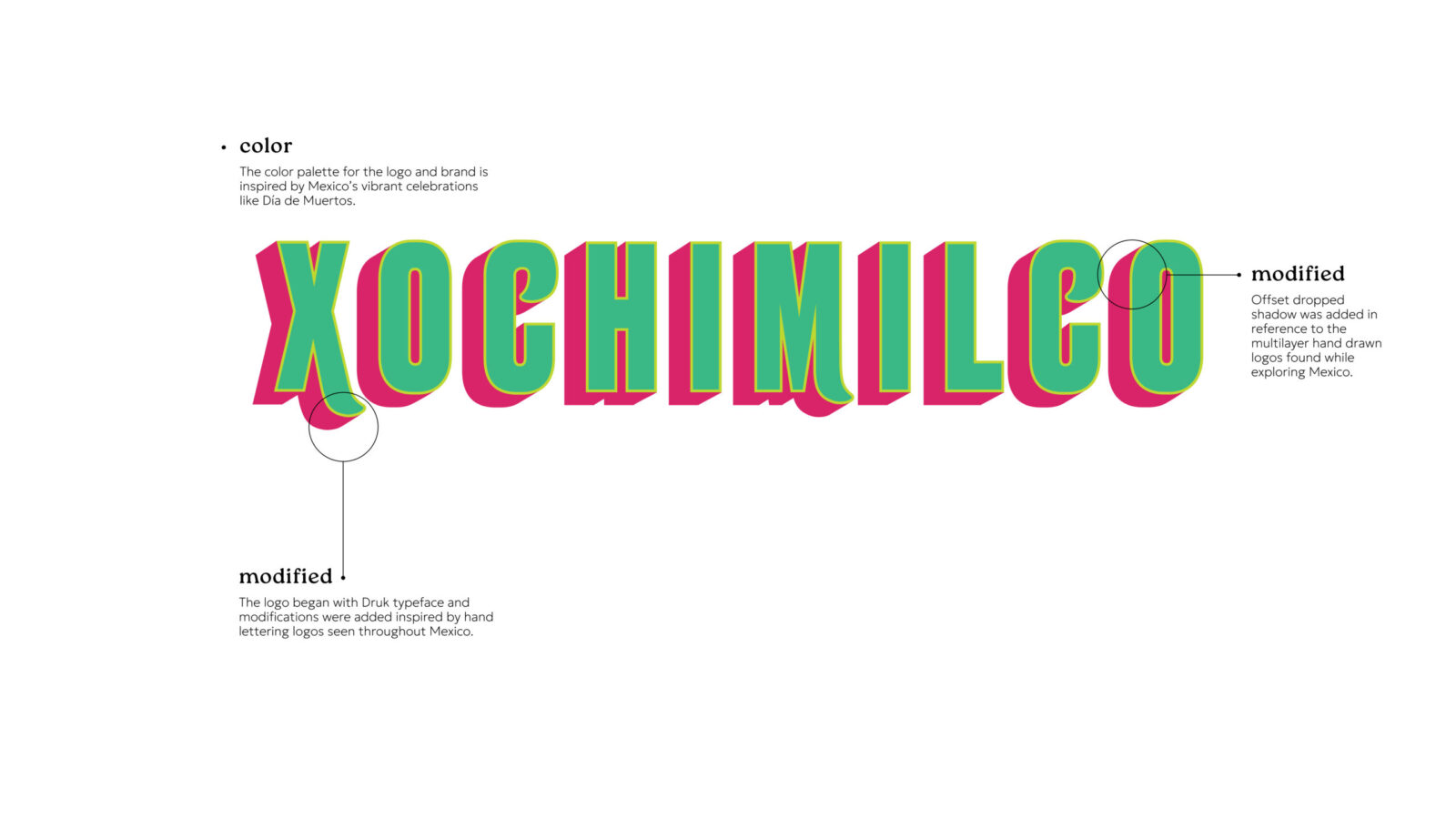 The name comes from one of the most visited sites in Mexico: Xochimilco, a lake located in the heart of Mexico City. The iconic trajineras (gondola-like boats) that fill the Xochimilco canals served as inspiration for the bold and colorful packaging design.