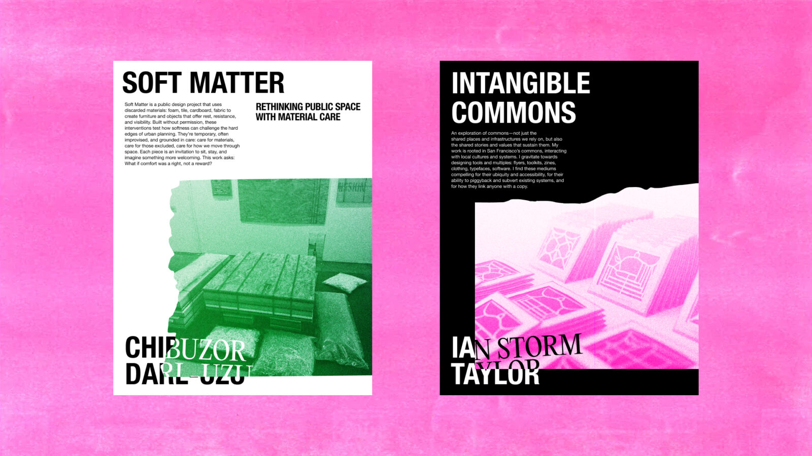 Make/Shift gave over thirty thesis projects a unifying frame while honoring their individual directions. The identity amplified the energy of the graduating class by treating change as its central material, visible in jagged edges, shifting layers, and riso textures.