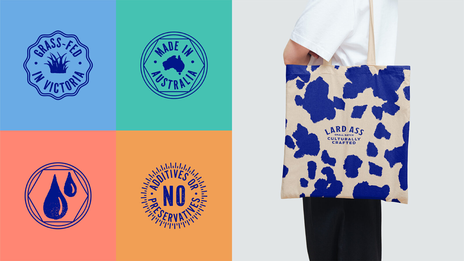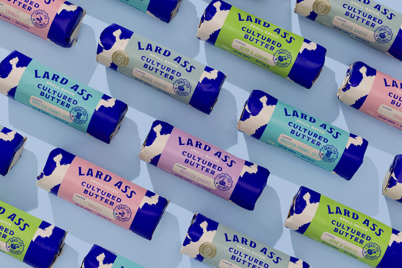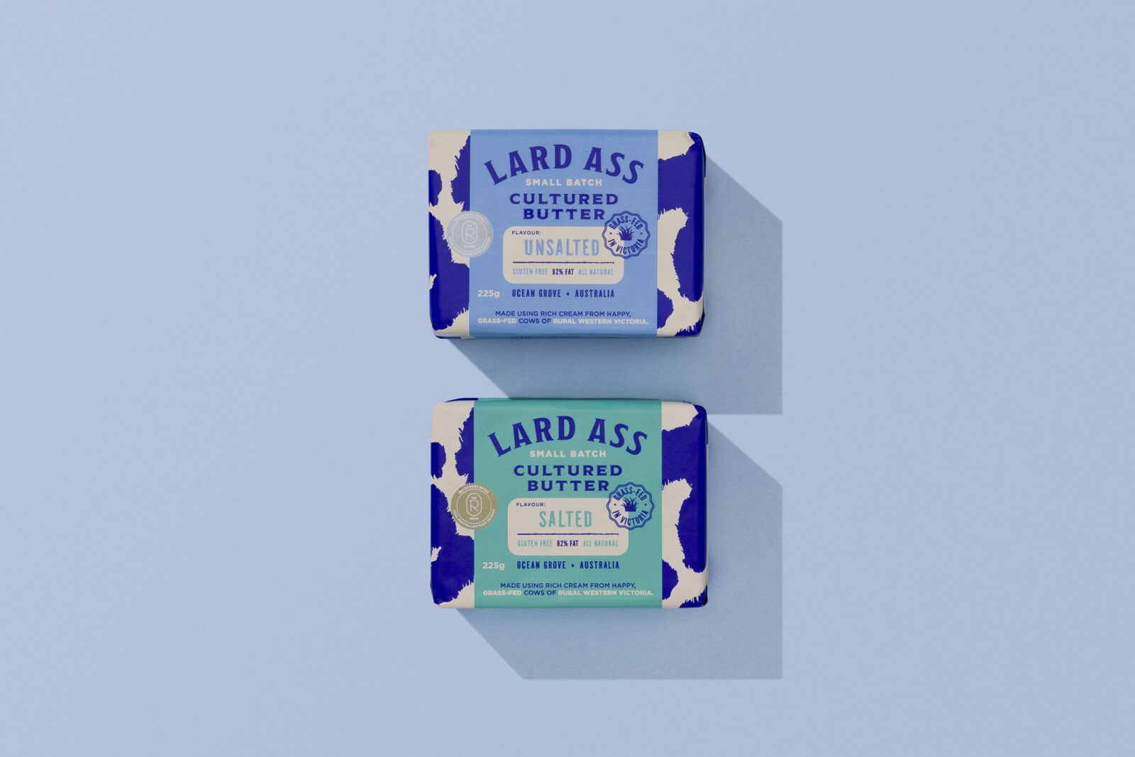 We discovered many butter brands were using an image of a cow in the traditional way. The colouring was often pale and soft, which created no stand out brands owning the space. The rebellious Lard Ass name demanded a bold and cheeky approach. “We’ve always been disruptive, because of our name, and now our brand and packaging reflects this. People really notice the new packaging. The packaging makes people want to buy it. It makes people smile! Something I hadn’t seen before with my old packaging. Now it really pops and the feedback from customers has been amazing, people really love it.” says Monica Cavarsan, Founder & Butter Maker.