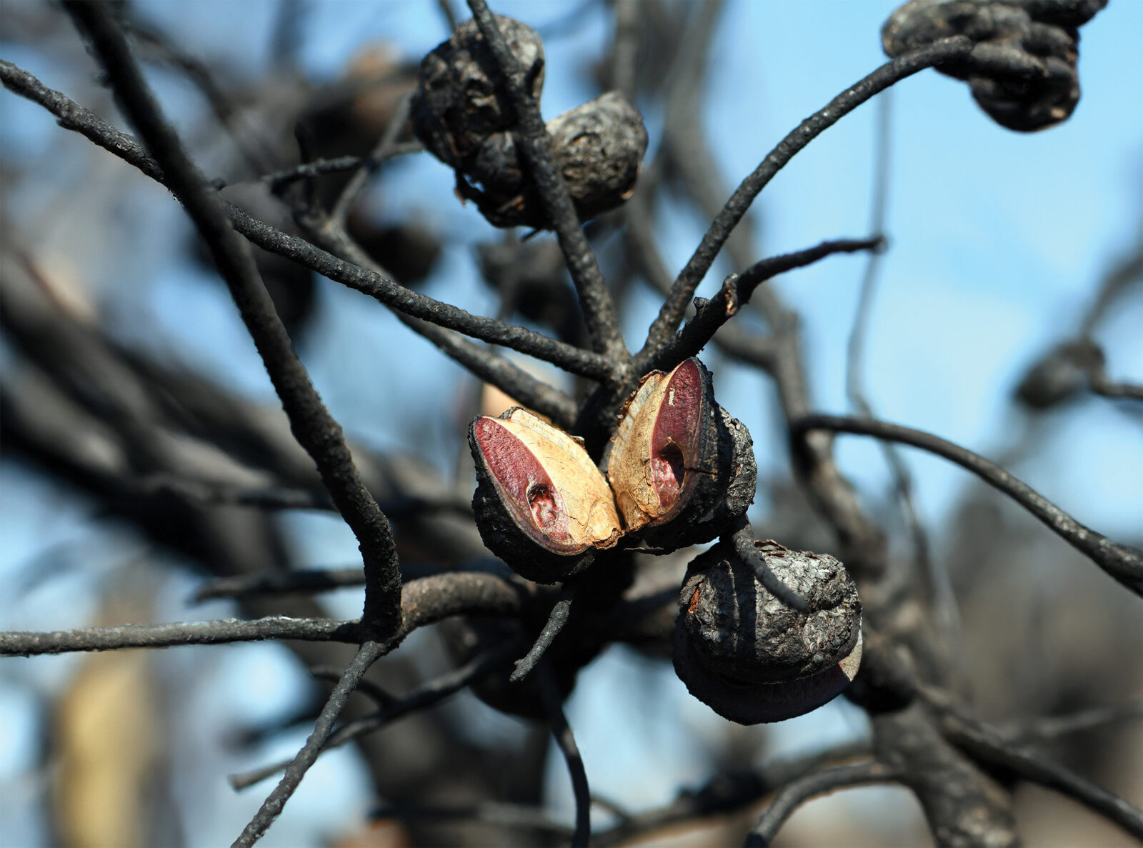 There are many Australian native plants that depend heavily on fire for regeneration. These species which retain seeds within woody capsules, remain closed until stimulated to open by heat to scatter and regenerate.