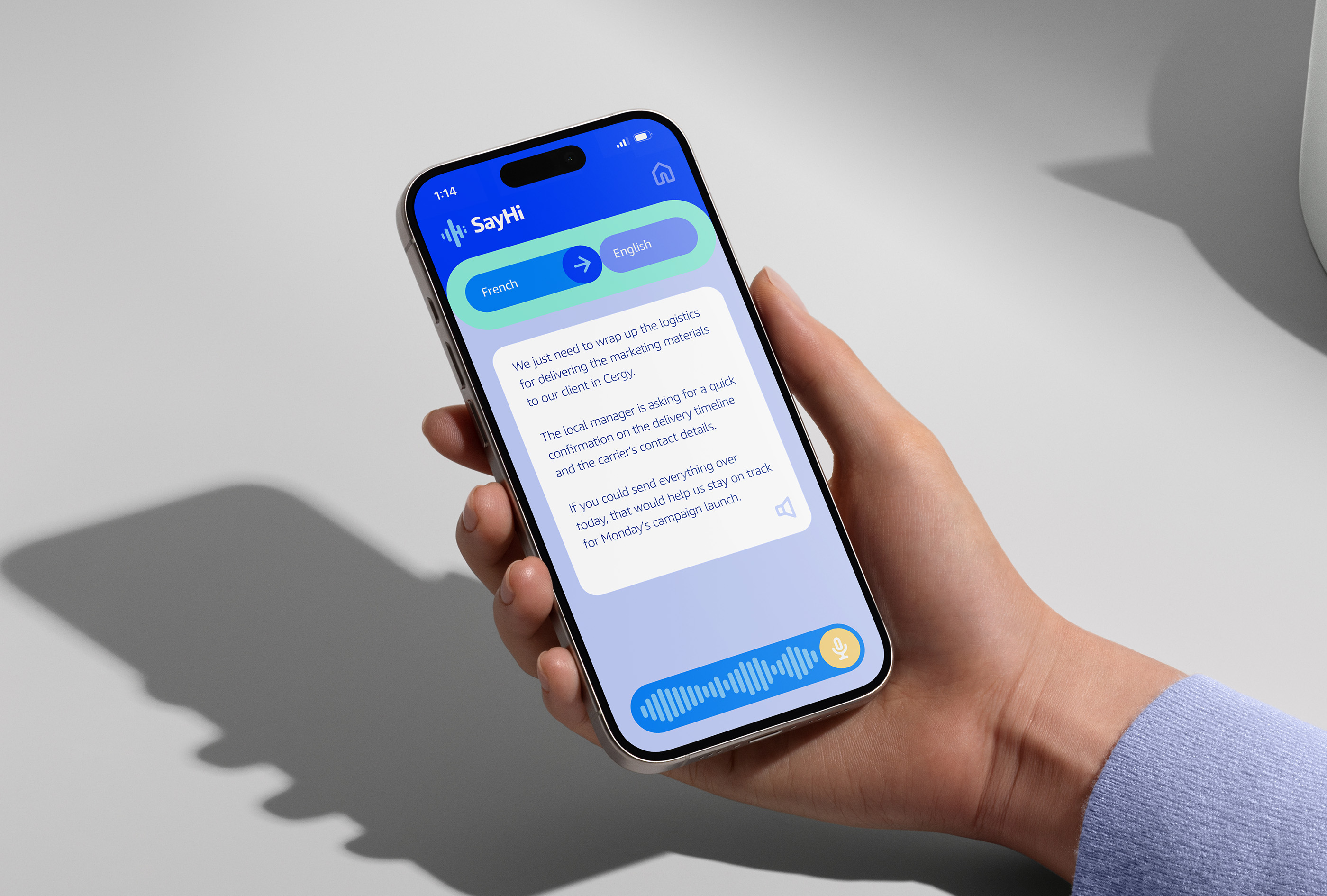 Amazon’s internal translation app, SayHi, enables real-time translation in 72 languages and 114 dialects, helping 1.2 million employees communicate seamlessly across fulfillment centers. While the app revolutionized workplace communication, it lacked a distinct visual identity that reflected its transformative role.