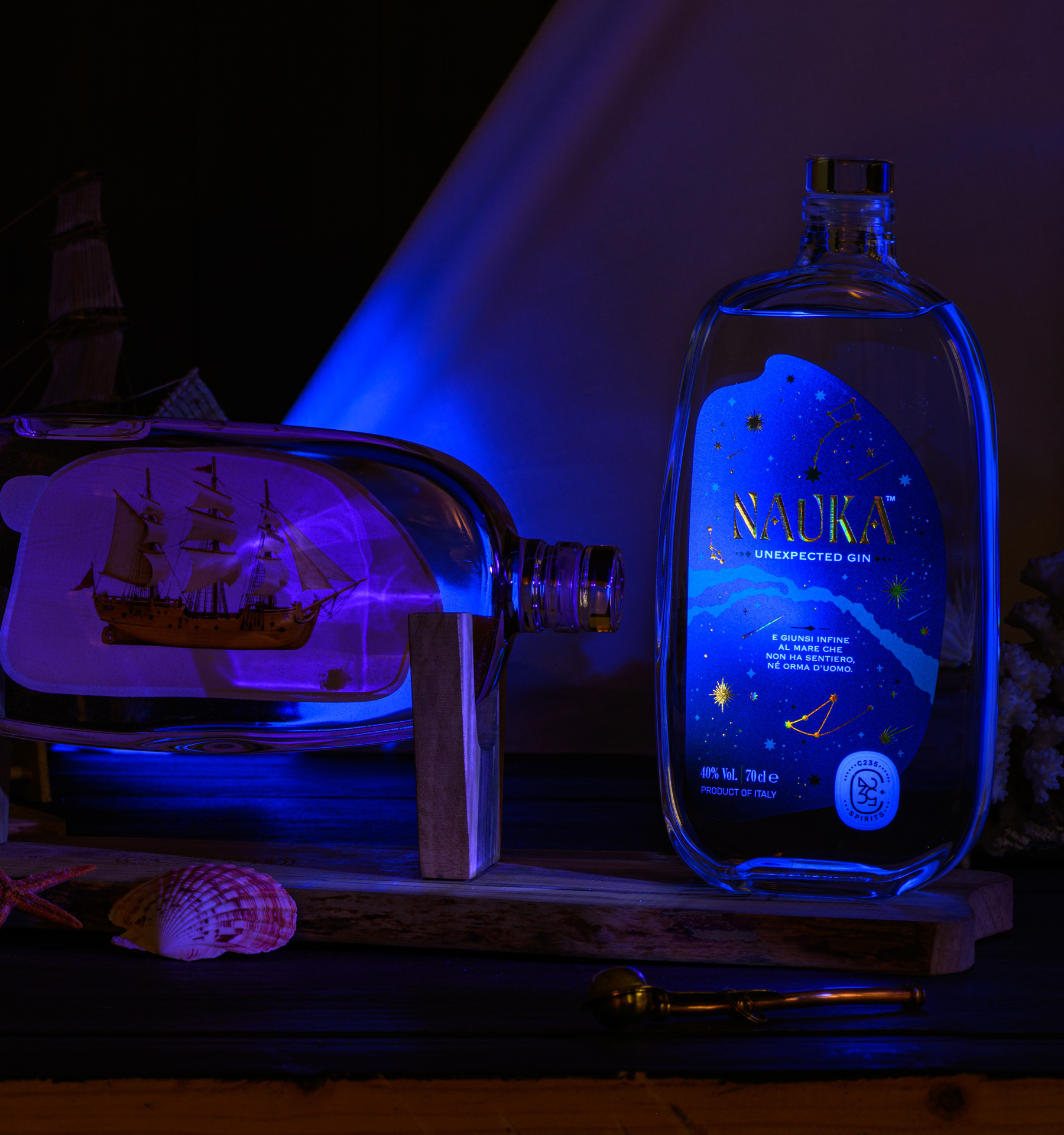 Nauka is a modern, intensely aromatic gin that pays tribute to exploration, discovery, and the spirit of adventure. An , epic in character. It evokes distant journeys and unknown horizons: “E giunsi infine al mare che non ha sentiero, né orma d’uomo (And at last I came to the sea that has no path, nor footprint of man.)”