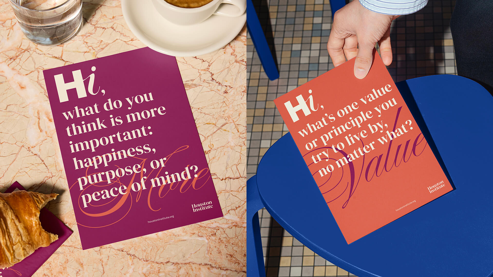 The challenge was to clearly articulate, visually and verbally, that Houston Institute provides a platform for students to find the truth concerning modern life’s fundamental questions, through the discussion and study of classical thinking and philosophies. This needed to be brought to life by creating an updated brand identity and website that clearly explains what Houston Institute does and stands for. This would lead to a consistent message, a more stable and consistent audience and attendances, to be more attractive to benefactors, and to energise the internal team with a brand that truly reflects who they are and what they do.