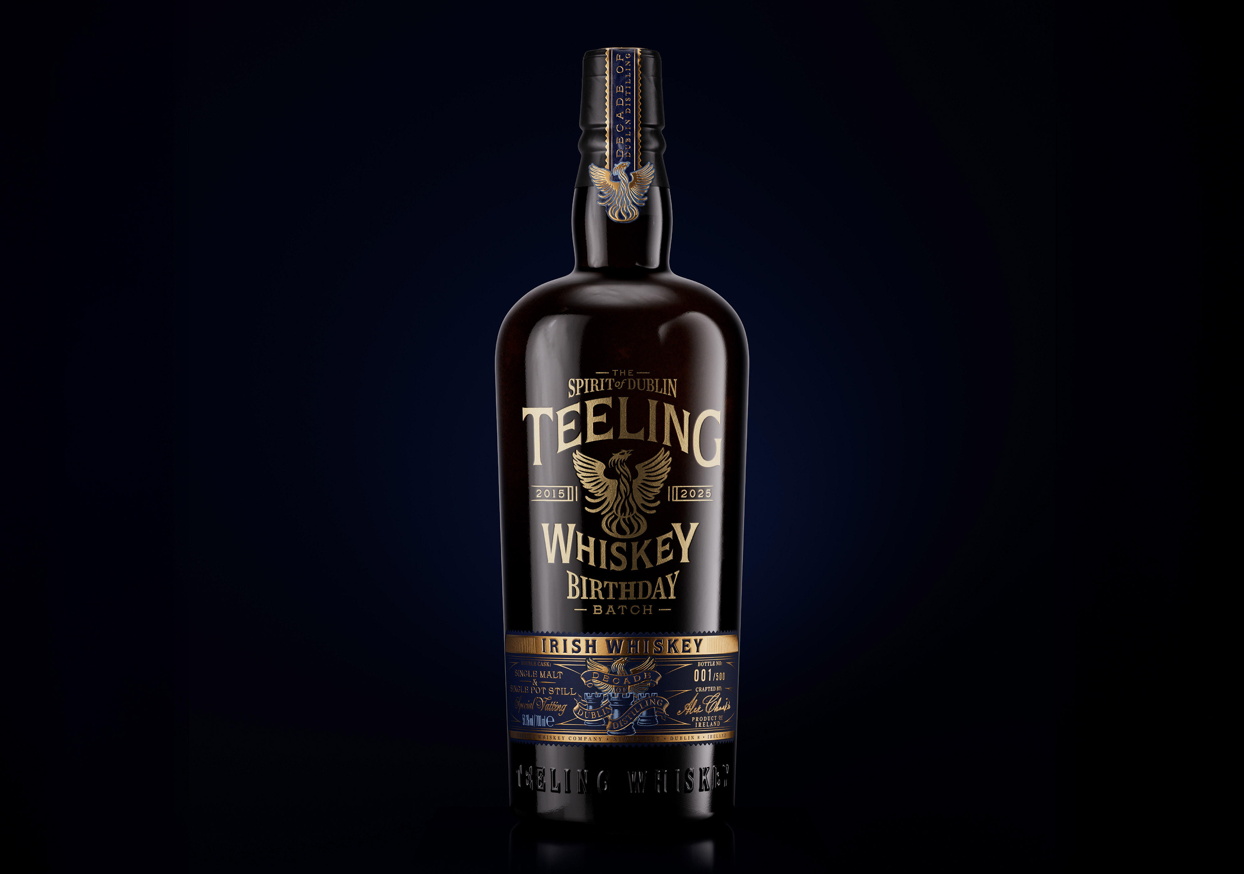 The bottle elevates the celebration through premium detailing, featuring an engraved, gold-infilled Teeling logo, updated specifically to mark the Decade of Dublin Distilling and flanked by 2015 and 2025. A metallic marque base label and matching neck strap complete the presentation, reinforcing craftsmanship, provenance and permanence, a modern tribute to Dublin’s whiskey past and its contemporary revival.