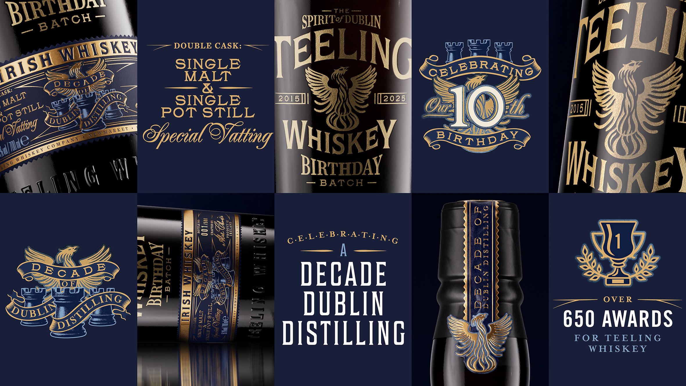 Developed to mark A Decade of Dublin Distilling, the Teeling Whiskey Distillery Birthday Batch branding celebrates both a milestone for the distillery and the wider revival of Irish whiskey in Dublin. Our long-standing collaboration with the Teeling family spans the past decade and beyond, making it fitting to partner on a release that commemorates this landmark moment in the distillery’s journey.