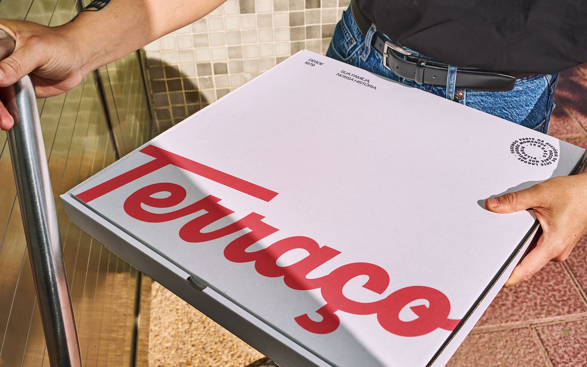 The project’s central objective was to align external perception with the brand’s internal essence, recapturing values such as warmth, joy, and excellence that have always defined Terraço. The new identity features a contemporary look, yet firmly rooted in tradition. Its exclusive typography was carefully designed to convey authenticity and emotion, while the graphic system reinforces the pizzeria’s warm, family-friendly personality.