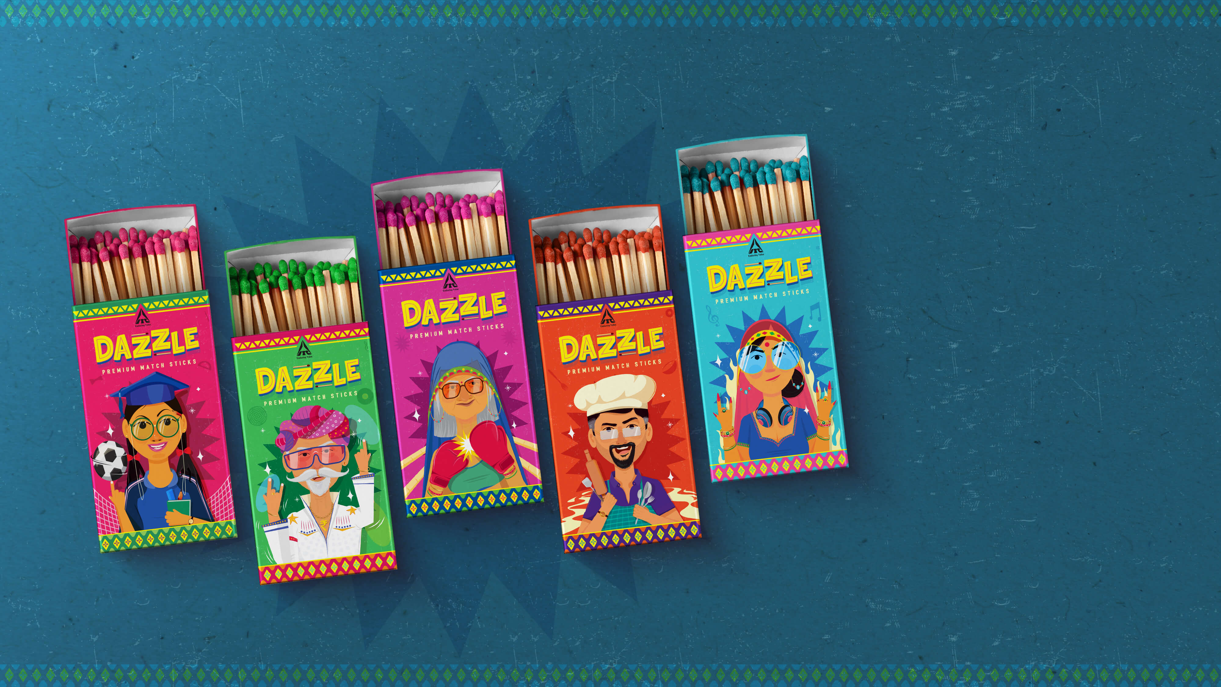 At theDESIGNPEOPLE, we were entrusted by ITC Limited to reimagine a product that has remained unchanged for decades. Drawing inspiration from the vibrant and playful world of Indian Kitsch art, we curated a unique ‘Indian family’ of quirky characters to adorn the matchbox packaging. Each character tells a story, reflecting the limitless potential within every individual to dazzle, regardless of age or background. This imaginative approach turns a functional item into a canvas for storytelling, infusing it with personality, humour, and charm.