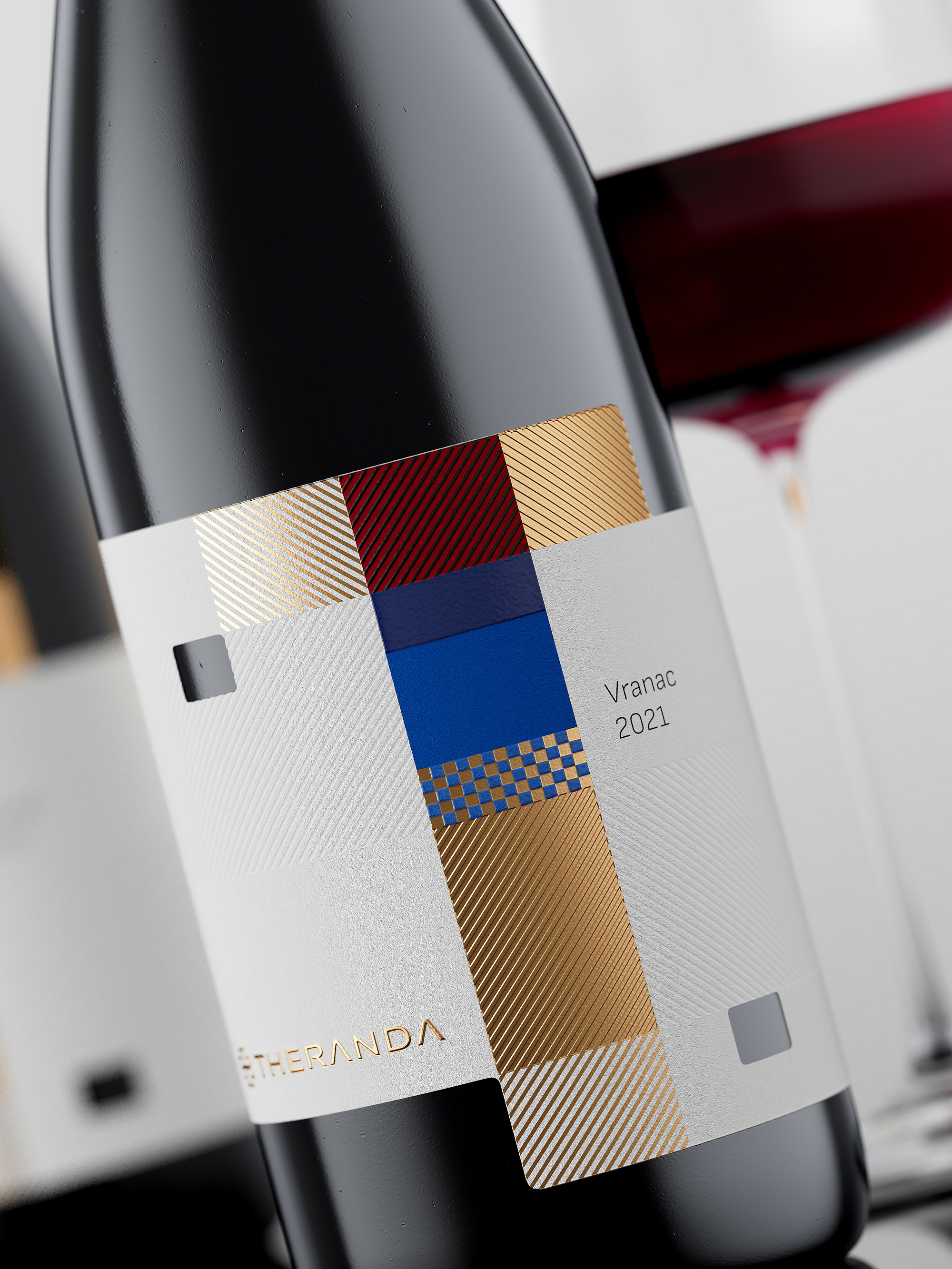 The Theranda label is more than packaging—it is a visual manifesto. By merging geometric abstraction with luxurious finishes, it reflects a wine positioned for a modern, design-conscious audience while retaining the artisanal gravitas expected of a premium vintage. The result is a striking balance of aesthetic boldness, tactile richness, and technological mastery, making this one of the most memorable label designs in recent years.