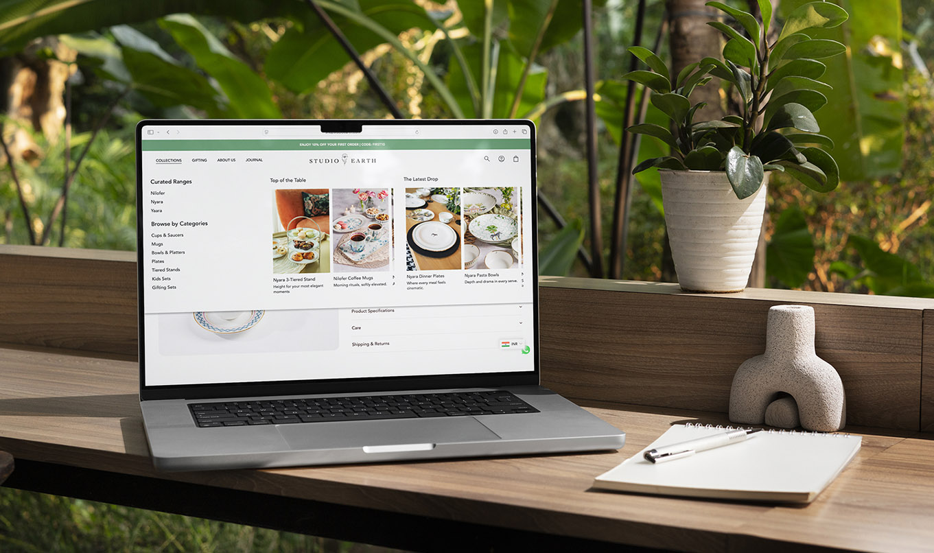 - Keywords: tableware brand, luxury tableware, premium homeware, hosting rituals, dining design, e-commerce, ecommerce website, website design, design case study, digital design, shopify website, product storytelling, material-led design, maximalist design, luxury branding, home & lifestyle brand, design studio, global brand, editorial web design, porcelain tableware, vegan bone china, handcrafted design, modern dining, elevated hosting, gifting experience, curated shopping, slow design, quiet luxury, lifestyle ecommerce, design-forward brand, global homeware, material storytelling, refined aesthetics, contemporary craftsmanship, intentional design, visual hierarchy, product-led design, immersive imagery, thoughtful UX, visual communication designers, graphic designers, brand designers, branding company in India, The Roogg Design, creators, visual creators, packaging designers, packaging design studio, design portfolios, designers