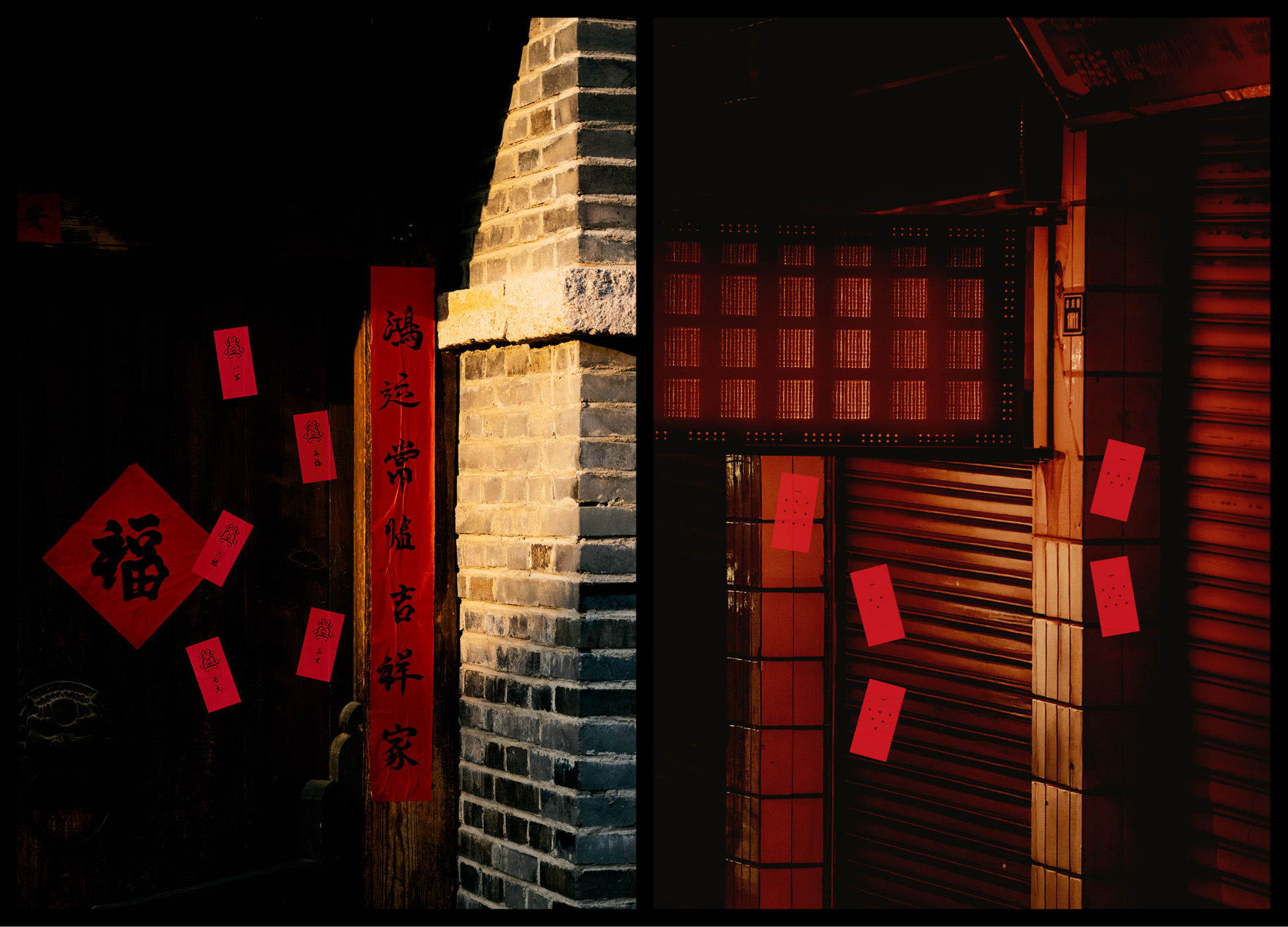 The calligraphic typography used throughout the design is inspired by the traditional practice of placing handwritten blessing papers at the entrance of a house during the Lunar New Year. These red papers often carry wishes for fortune, prosperity, and protection, and are placed on doors, walls, and shop fronts to welcome good luck while keeping negative influences away.