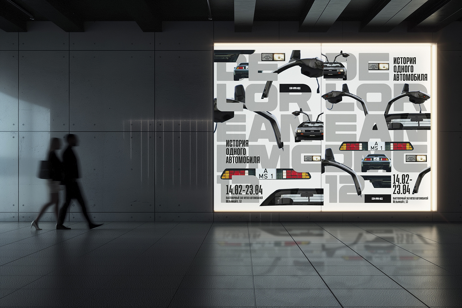 - Keywords: Car history, DeLorean DMC-12, car exhibition, exhibition design, car poster, poster design, automobile, car