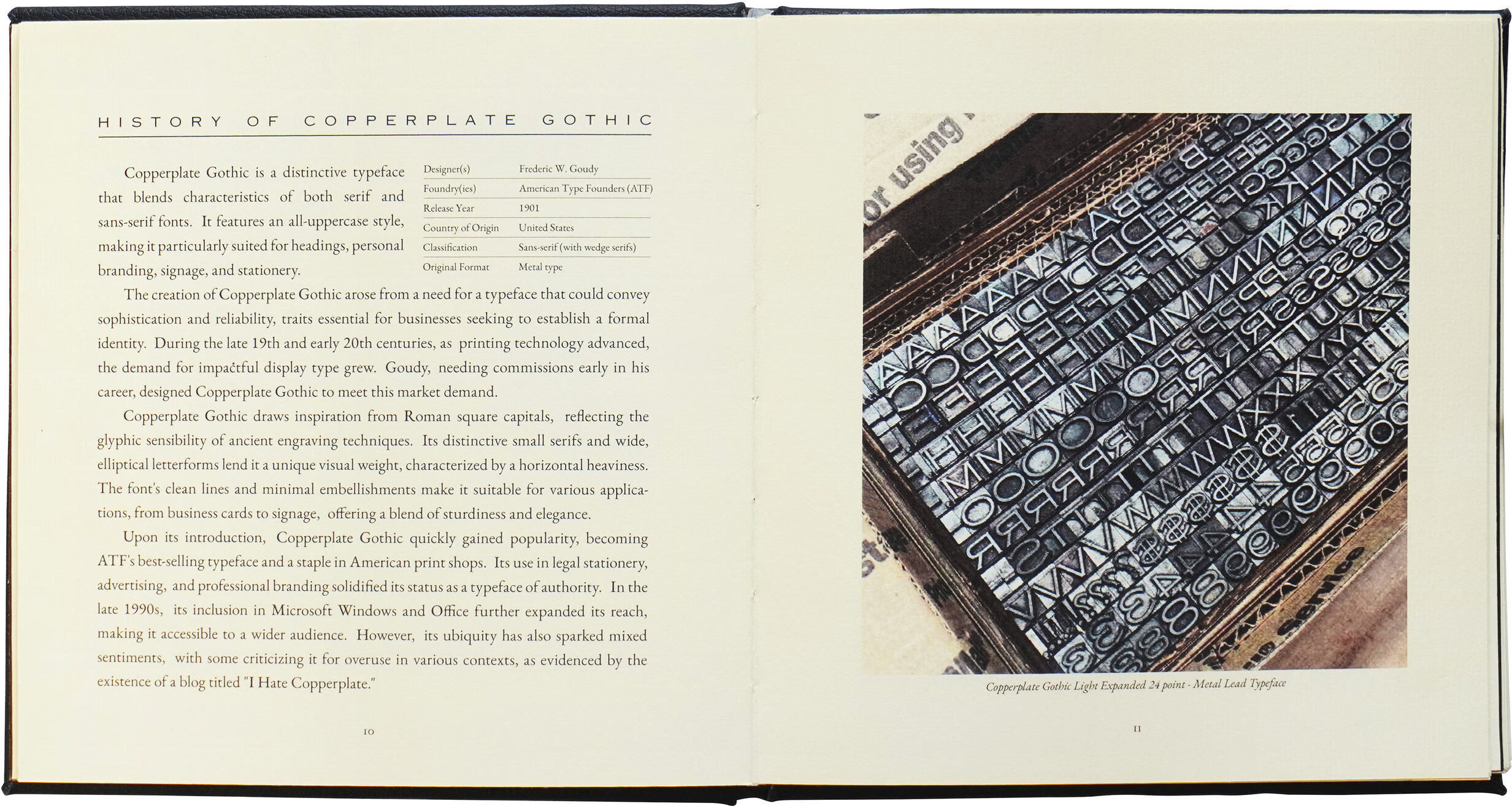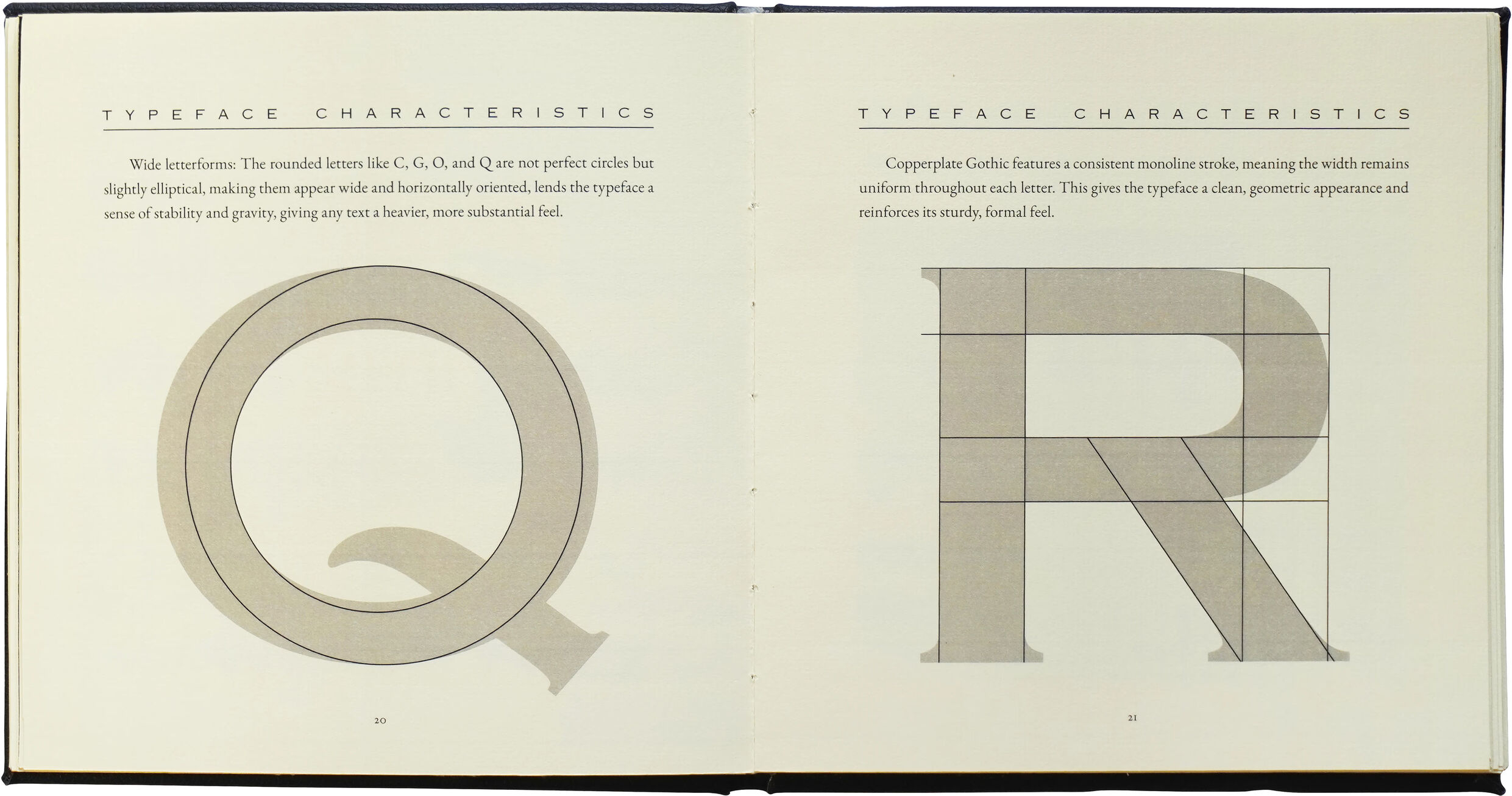 This project was conceived not merely as a typographic manual, but as a time machine. It is a book about the past, crafted from the materials of the past, designed to house a typeface that remains strikingly timeless in the modern world: Copperplate Gothic.