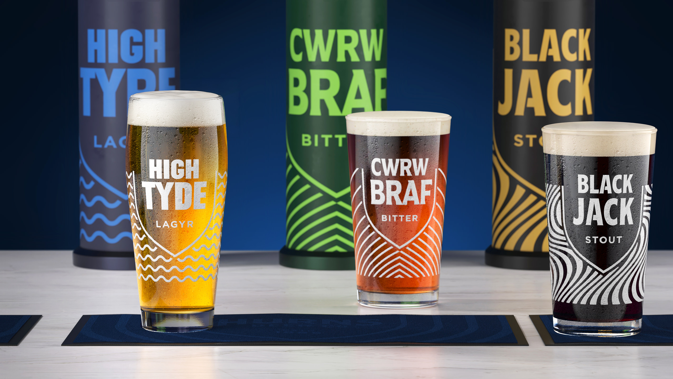 The result was High Tyde, a name inspired by the famous tidal range in Swansea Bay. It’s simple to recognise, easy to order and naturally aligned with the brand’s regional identity. We also restyled the word lager as ‘lagyr’ to echo the product’s Welsh roots.
