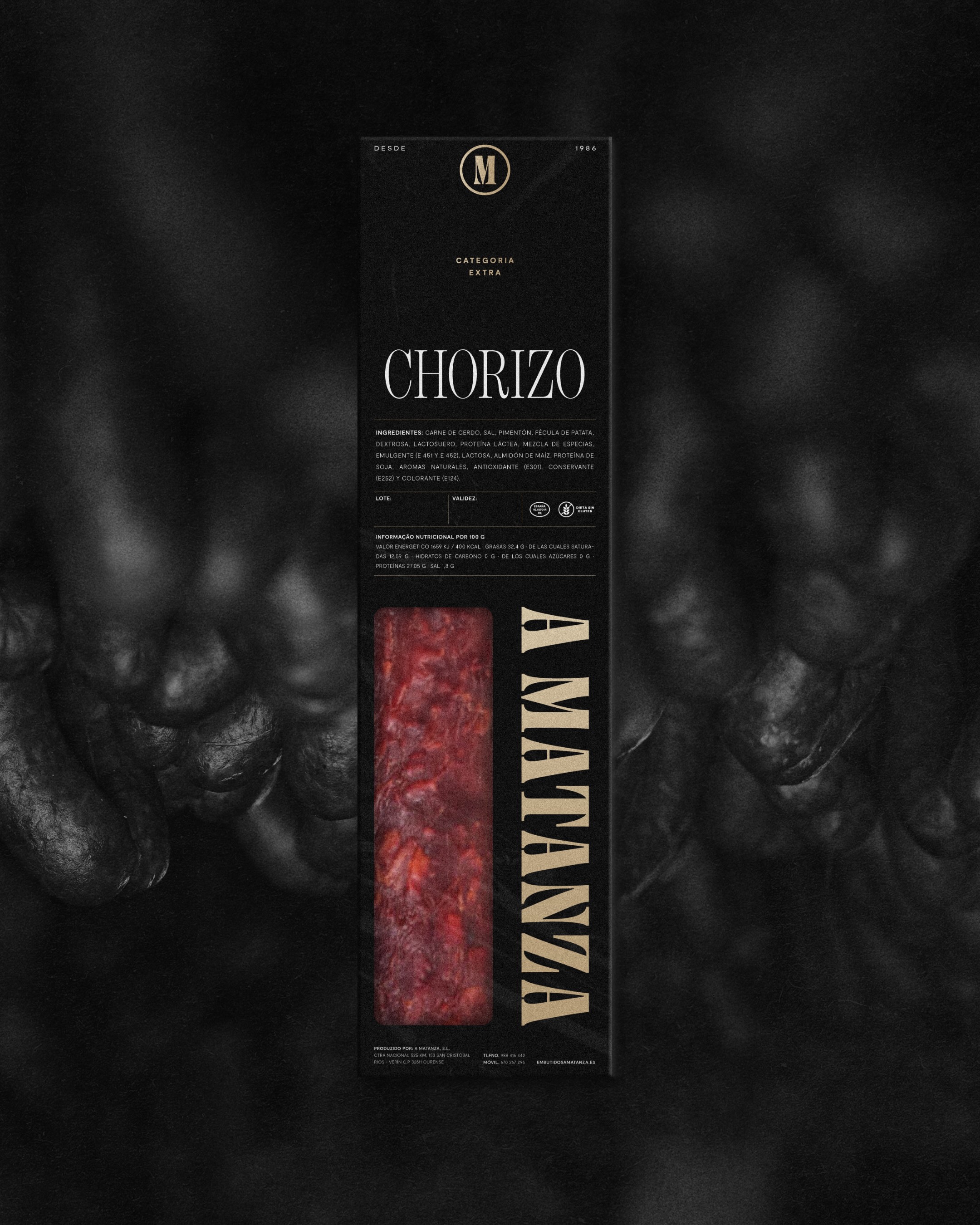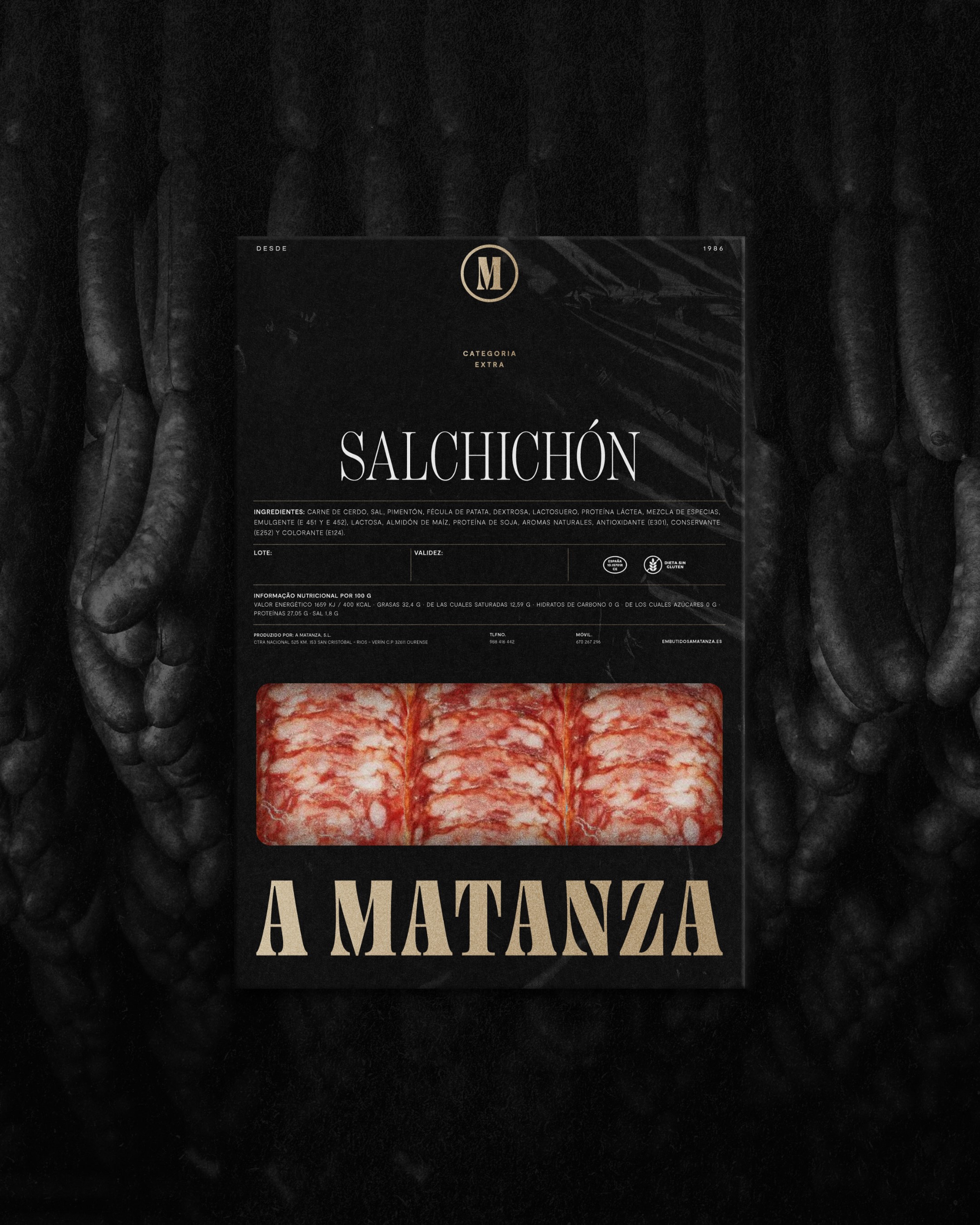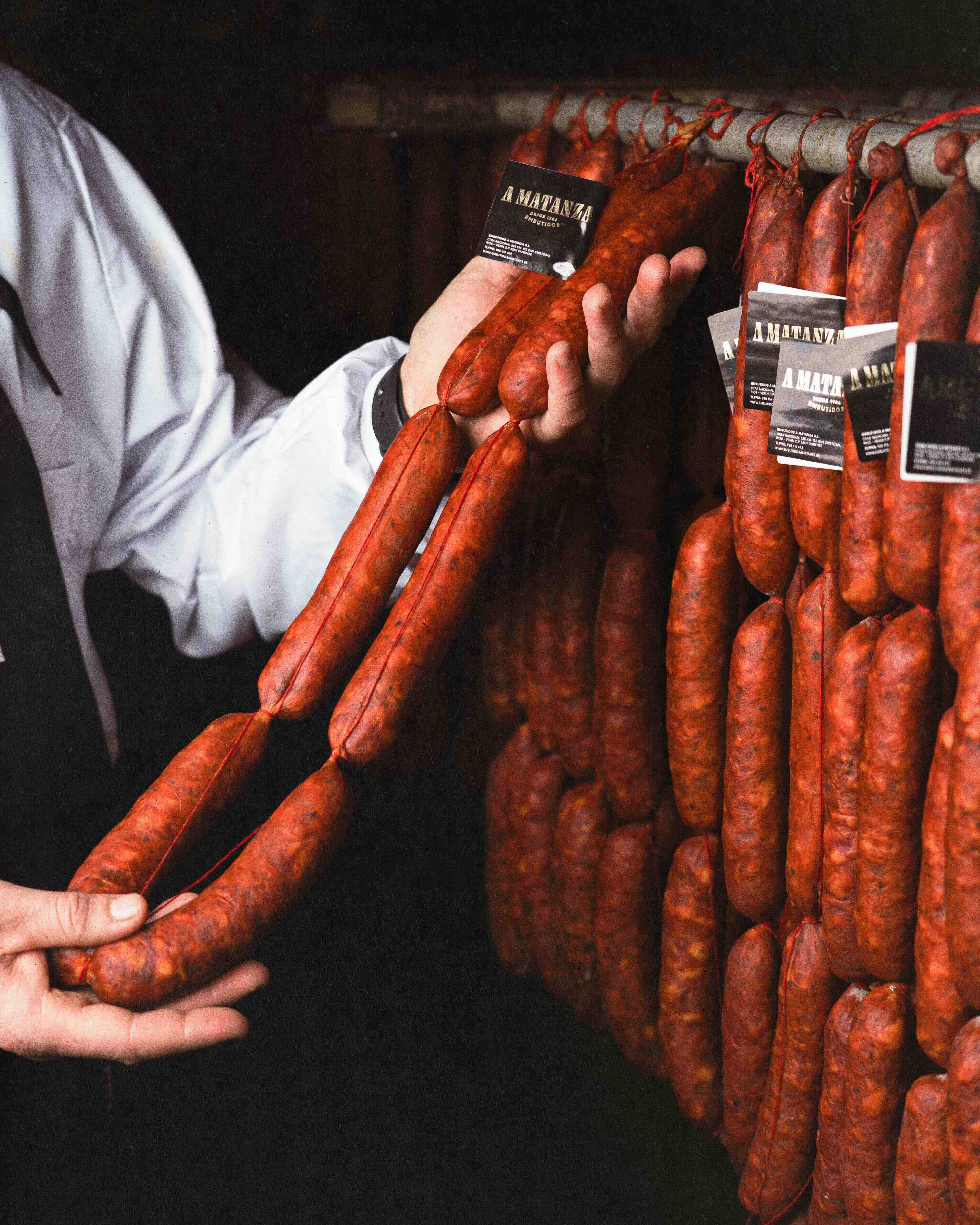 Embutidos A Matanza is a brand deeply rooted in the Galician tradition of meat and smoked meat production. Representing the third generation of a family of producers, the brand keeps ancestral knowledge alive, combining traditional recipes with the highest contemporary quality standards. From this legacy, we developed a new visual identity designed to reinforce the brand’s authenticity and confidently project it into the future.