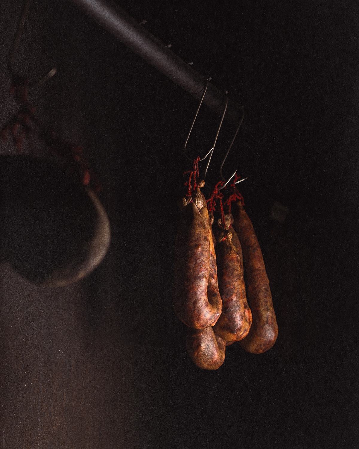 The packaging design emphasizes the origin and artisanal nature of the products while also meeting modern point-of-sale requirements. The photography highlights the rustic character of the smokehouse and the traditional production environment, where time and the smoke from oak wood are essential in shaping the products’ unique flavor.