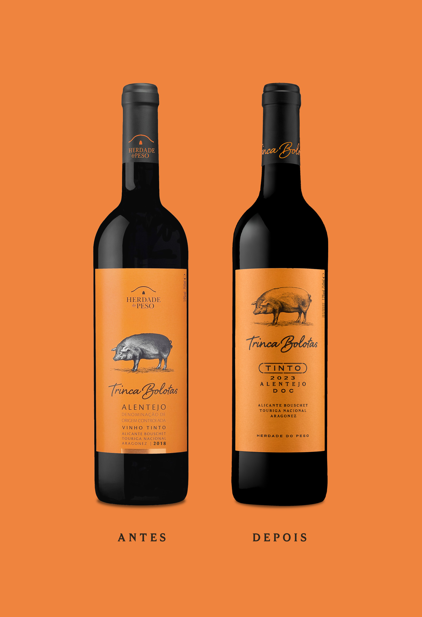 The celebrated pig illustration was retained but refined — its dated gradient background removed — and given pride of place as the label’s true hero element. By simplifying the visual environment, the design gives the Trinca Bolotas name more space to breathe and a stronger sense of presence. Meanwhile, the producer, Herdade do Peso, gracefully steps into a supportive role, allowing the sub-brand’s personality to take centre stage.